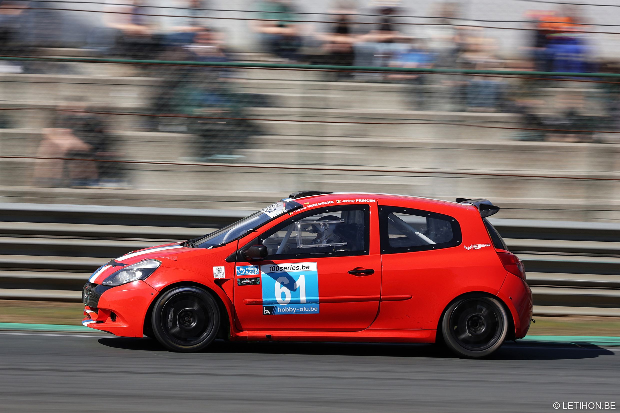 C’est sous un franc soleil et des températures printanières que la 100 Series by BGDC 2025 a pris son envol ce samedi sur le Circuit de Zolder, dans le cadre des Terlaemen Cups. Des conditions idéales qui ont favorisé une épreuve de toute beauté… Si la première partie de la course était franchement calme, Tom Meurrens (Porsche 992 GT3 Cup #23) prenant rapidement ses distances par rapport à Raphaël van der Straten (MARC Cars II V8), au cœur du peloton, les ennuis ne tardaient pas, et sans réelle surprise à Zolder, c’est du côté des transmissions que cela se passait, avec les retraits trop rapides de la Renault Clio #110 de Patrick Asnong, Frédéric Faucon et Alain Furnal, victime de sa boîte de vitesses, tandis que la Renault Clio #262 de Robin Dries et Samuel Hilgers cassait un cardan, étant également contrainte d’en rester là ! De quoi déjà entamer les rangs de la Division 1. D’autant que la Renault Clio #69 de Rogier Van Kuijk et Thomas Leten, engagée en Classe A, rencontrait des soucis d’allumage peu avant le cap de la mi-course, avant de souffrir d’un bris de courroie d’alternateur. Pire encore pour la Renault Clio #10 d’Hervé Deger et Jérôme Heinen, qui ne prenait même pas le départ, conséquence de soucis techniques !