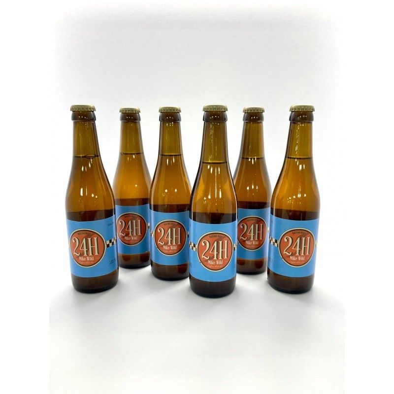 C'est de Bastogne, terre de rallye bien connue, que nous arrive donc la '24H Mike Wild', une blonde légère qui se site entre la pils et la bière spéciale, à base de houblon Centennial et Barbe Rouge. Pas de doute, c'est du belge ! Produite de manière artisanale à la brasserie Sainte-Hélène de Florenville, la '24H Mike-Wild' est une bière refermentée en bouteille, non filtrée et non pasteurisée. La sélection des produits de base se fait de manière très pointue avec le responsable sous le l'oeil attentif de l'équipe de production qui participe également au suivi de l'étiquetage et à la mise en carton des bouteilles issues du premier brassin.