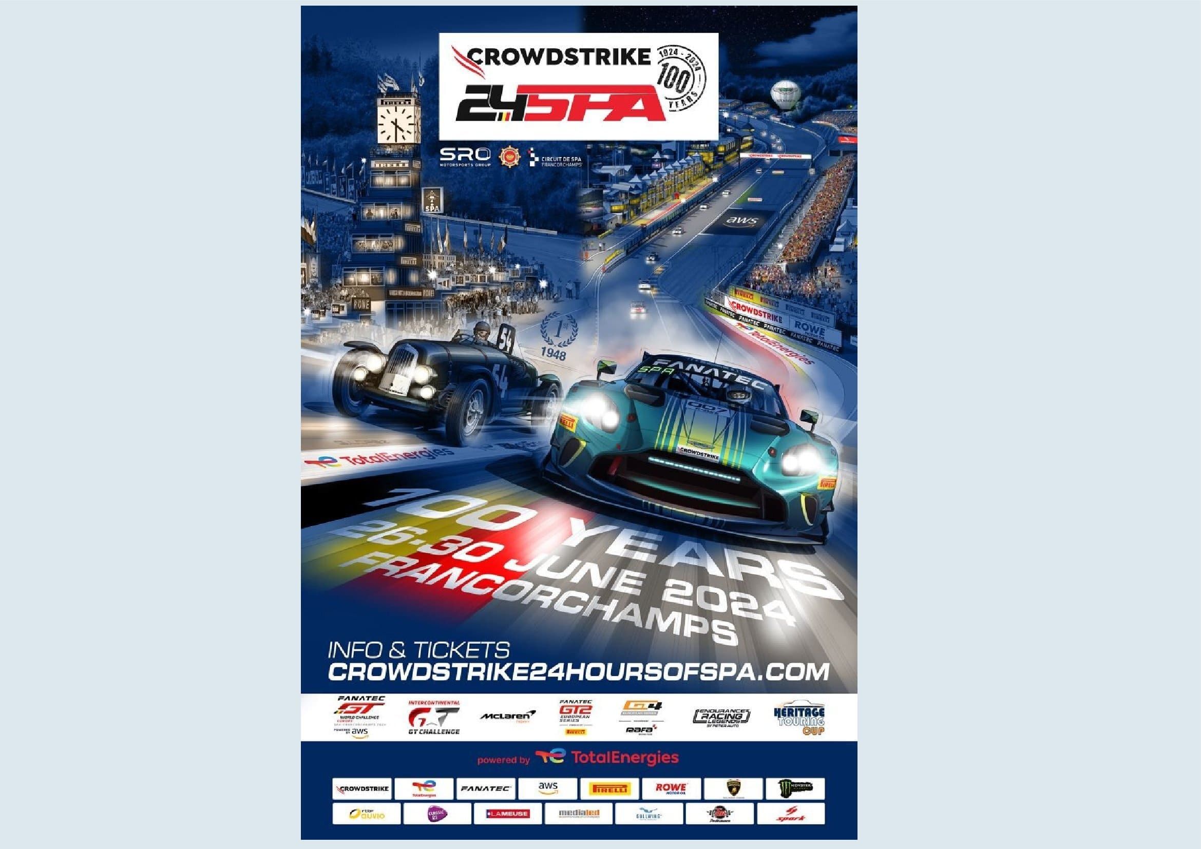 C’est aussi lors du centenaire de la grande classique belge que vous pourrez vous procurer les posters collector dans les différentes échoppes officielles. Et si vous ne pouvez pas attendre, sachez que ces posters sont déjà en vente dans la rubrique merchandising du site internet des CrowdStrike 24 Hours of Spa. (Vincent Franssen & Com)