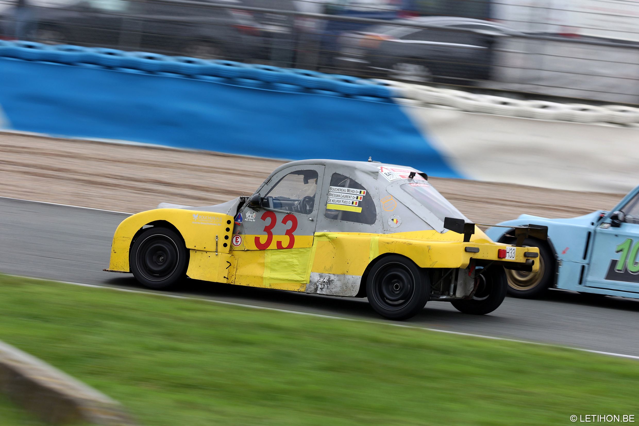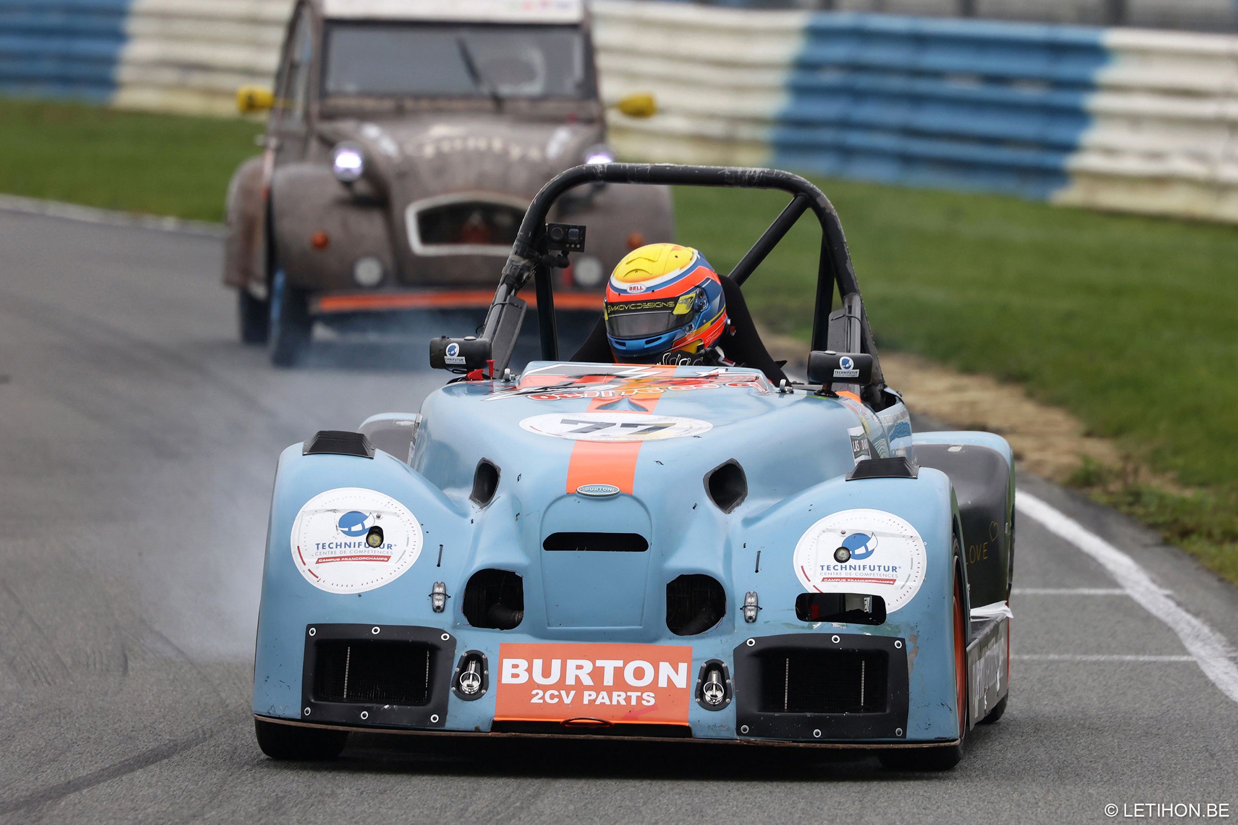 Samedi, la Course 1 était synonyme de belle démonstration pour Jean-Pierre Blaise et Sébastien Piette, qui comptaient deux tours de bon sur la #4 2M Racing au moment où le drapeau rouge était brandi suite à la spectaculaire sortie de piste d’une C1 ! Même si elle concédait plusieurs tours, la #26 Wacky Racers complétait le top 3 des 2CV, de quoi permettre à Clément Nopère d’encore croire en ses chances. Quant à la #33 P4M, elle était victime d’un bris de roulement de roue qui la laissait en 5ème position.