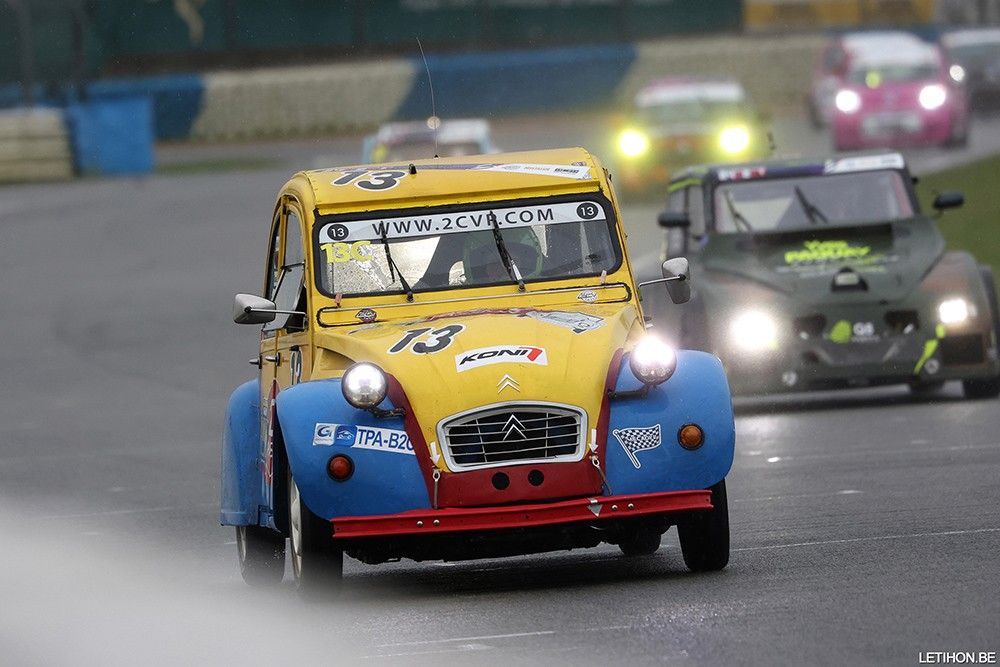 Les conditions n’étaient certes pas faciles ce week-end dans le Pas-de-Calais à l’occasion des deux courses de 6 heures réunissant 2CV et C1, soit un total de 45 voitures sur la grille de départ. Et si la #16 The Golden Horse 2 de Blaise-Cremer-Piette a rarement quitté le sommet du classement, samedi, sa victoire n’a pas été cousue de fil blanc pour autant. Un souci avec un câble de bougie lui a en effet coûté deux tours, de quoi permettre à la #3 Mickey Racing de Michael Berben et Julien Darras de se retrouver aux commandes. Au bout du compte, Sébastien Piette parvenait à revenir dans le sillage de Michael Berben, pour finalement prendre le meilleur et s’imposer avec un avantage de 20 secondes ! Chaud devant…