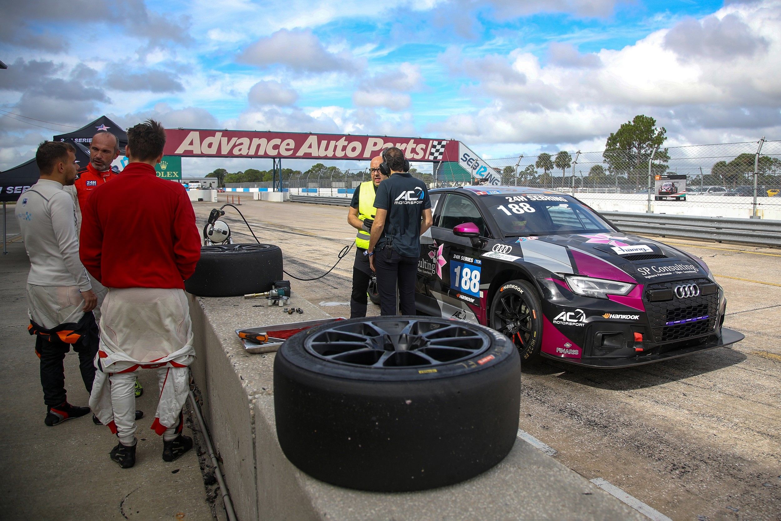 "C’est sans doute du rarement vu dans le cadre d’une course de 24 heures, mais on a enchaîné coup sur coup les essais libres, la qualification et la course !, s’exclame Stéphane Perrin. Sebring fait partie de ces pistes qu’il convient de respecter. Or, chaque pilote a eu droit à… 5 petits tours pour découvrir les lieux ! Un peu short… et merci le simulateur ! Ajoutez à cela une météo difficile dès le départ, avec un petit crachin revenant régulièrement, et vous avez allègrement de quoi compliquer la tâche des pilotes dès l’instant où on se retrouvait en pneus slicks sur une piste ne cessant d’évoluer."