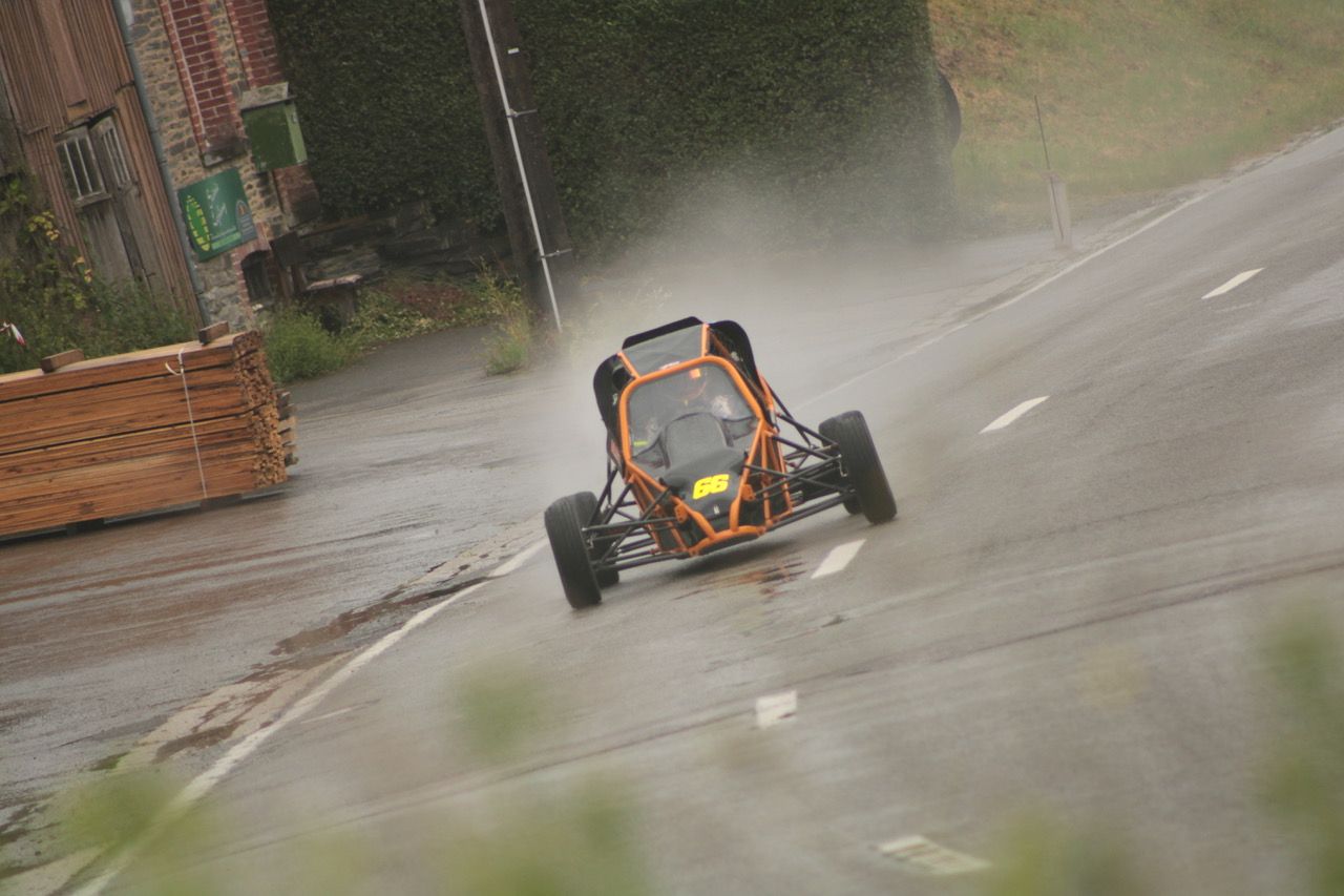 Du côté des Divisions 1-2-3 (voitures produites en série), Francis Gilles se satisfaisait d’une unique montée aux essais pour se montrer le plus rapide sur une côte qu’il connaît bien. Il avait également la bonne idée de préserver ses pneus pluie pour les deux uniques montées officielles qu’il effectuait. De quoi lui permettre de signer une nouvelle victoire avec son efficace Ford Escort Cosworth à quatre roues motrices. La surprise, elle, venait davantage de la 2ème place de Romuald Thirion, comme un poisson dans l’eau dans ces conditions difficiles, au volant de son Opel Kadett C GT/E. Il découvrait également avec beaucoup de satisfaction des pneus de compétition Kumho très efficaces. Au point qu’il prenait même le meilleur sur Olivier Dubois (Lotus Elise) dont plusieurs rapports de boîte ne fonctionnaient pas en première montée. Derrière, la VW Cox des Close était partagée entre Ludovic et Pascal, le premier nommé prenant progressivement le meilleur sur son frère, devant de nombreux vainqueurs de classe.