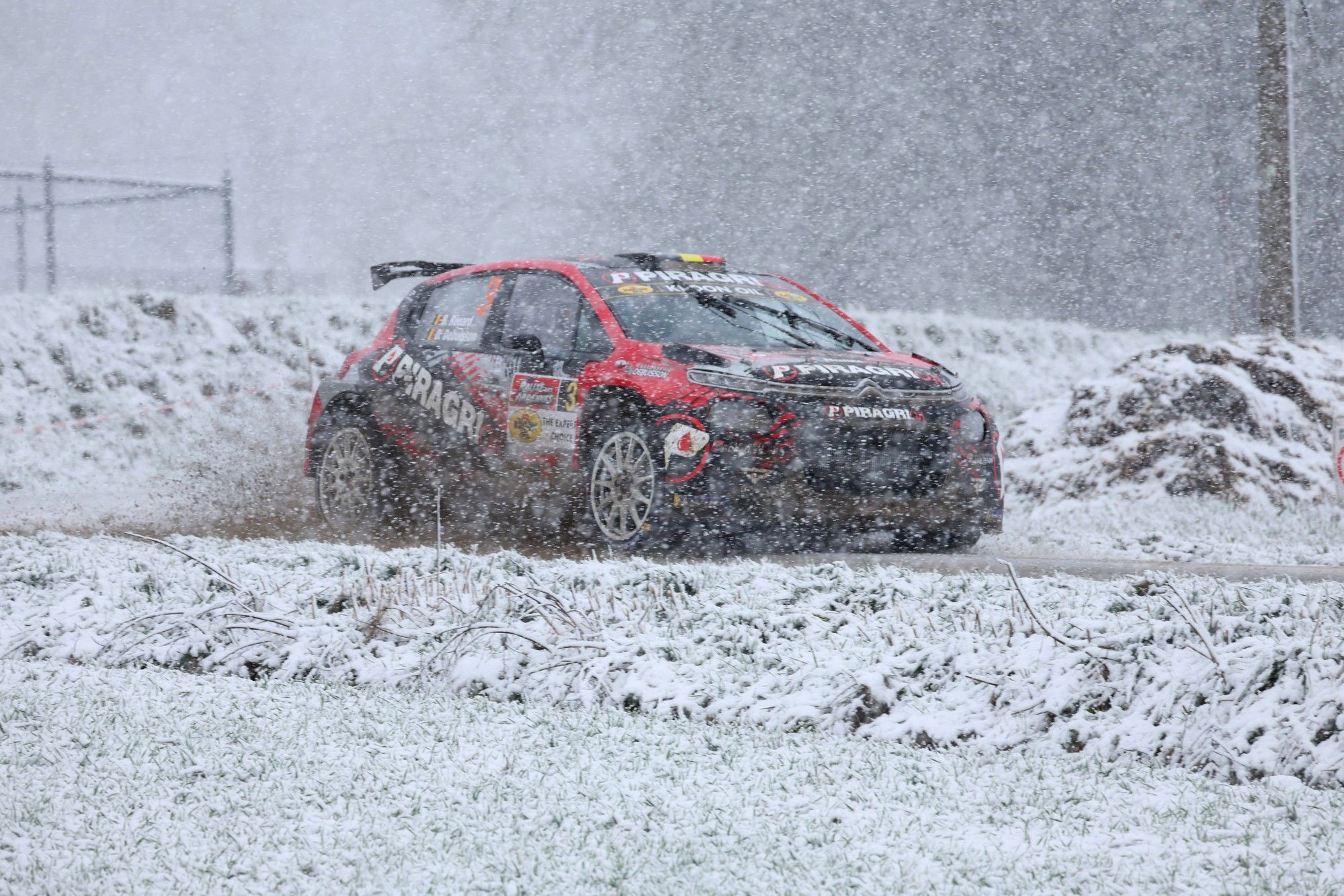 Il n'aura pas fallu attendre longtemps avant le premier fait de course majeur au Rallye des Ardennes. Alors que la neige est bien présente sur la région de Dinant, Cédric Cherain (Skoda) est parti à la faute... à 30 km/h dans l'ES2 Chevetogne, qui a démarré en retard. Abandon ! Bastien Rouard (Citroën) a signé un deuxième scratch, précédant Jourdan Serderidis (Skoda, 16"5), Thomas Martens (Hyundai, 17"5), Thibaud Mazuin (Renault Clio Rally3, 41"2) et Steven Dolfen (Skoda, 1'02"2). Des écarts conséquents, expliqués par les conditions.