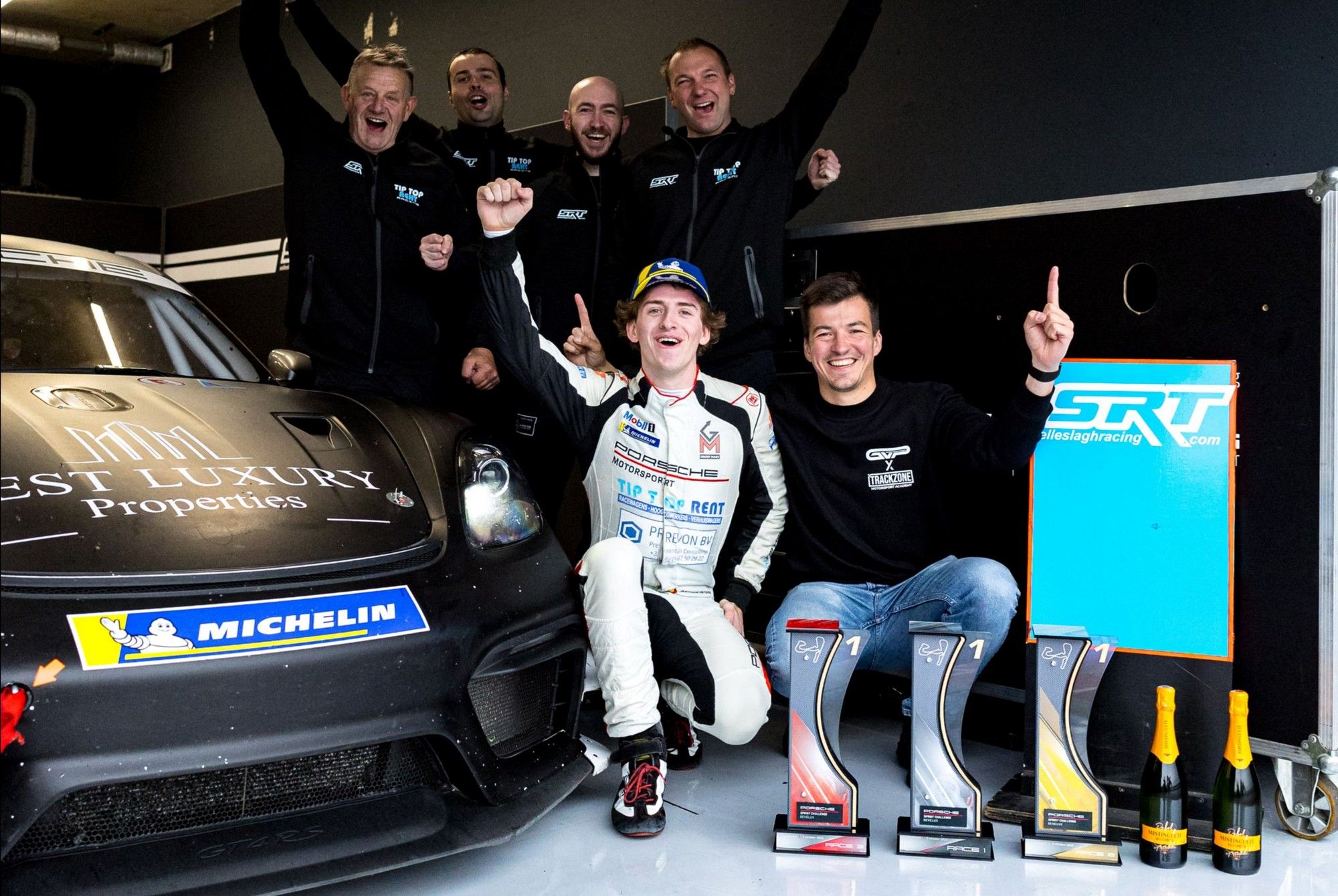 Dino van der Geest (Team GP Elite) a profité d’un solide week-end de clôture du Porsche Sprint Challenge Benelux pour prendre la couronne à son compte. Le Hollandais a non seulement remporté l’ultime course de la saison, mais qui s’est assuré le titre général dans la classe ‘992’. Le jeune Belge Arthur Peters (SRT) s’est distingué comme une semaine auparavant sur le Circuit de Spa-Francorchamps, rendant un bulletin parfait pour décrocher le titre dans la classe ‘GT4 RS4. Il achève en outre le championnat à la deuxième place générale, ce qui constitue une très belle prestation au beau milieu des Porsche 911 GT3 Cup – Type 992.