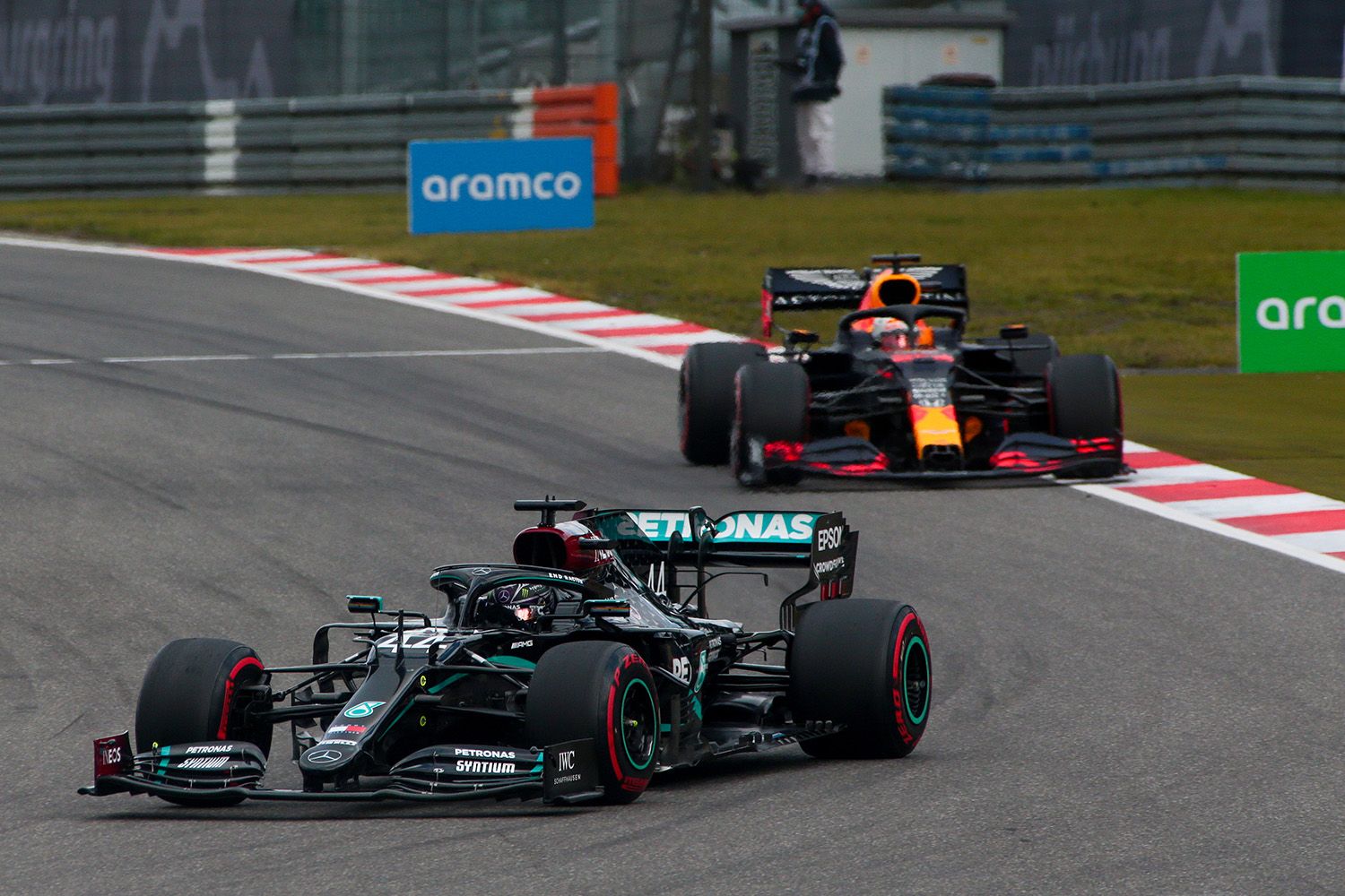 Hamilton n’en demandait pas tant pour rouler devant, avec quand même Verstappen (Red Bull) en embuscade à quelques secondes derrière lui. Mais au fil des tours, il devenait évident que le Britannique gérait la situation.