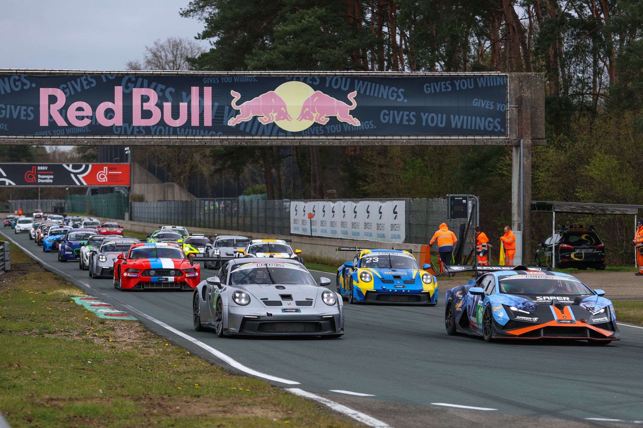Auteur de la pole position, Fred Bouvy subissait d’abord la loi de la Porsche 992 GT3 Cup Speedlover #18 de Jaxon Verhoeven, avant que la spectaculaire Lamborghini Super Trofeo Saber Motorsport Engineering ne reprenne les commandes. Ayant relayé Bouvy, Marc-Olivier Van Oppens faisait de la résistance aux avant-postes, tandis que le clan Porsche perdait un pion majeur, la #23 MM Racing de la famille Meurrens victime d’un bris de disque de frein, qui a touché la Porsche 996 GT3 Cup #84 de Patrick Vander Eecken et Nicolas La Monica au niveau de la Chicane Villeneuve !