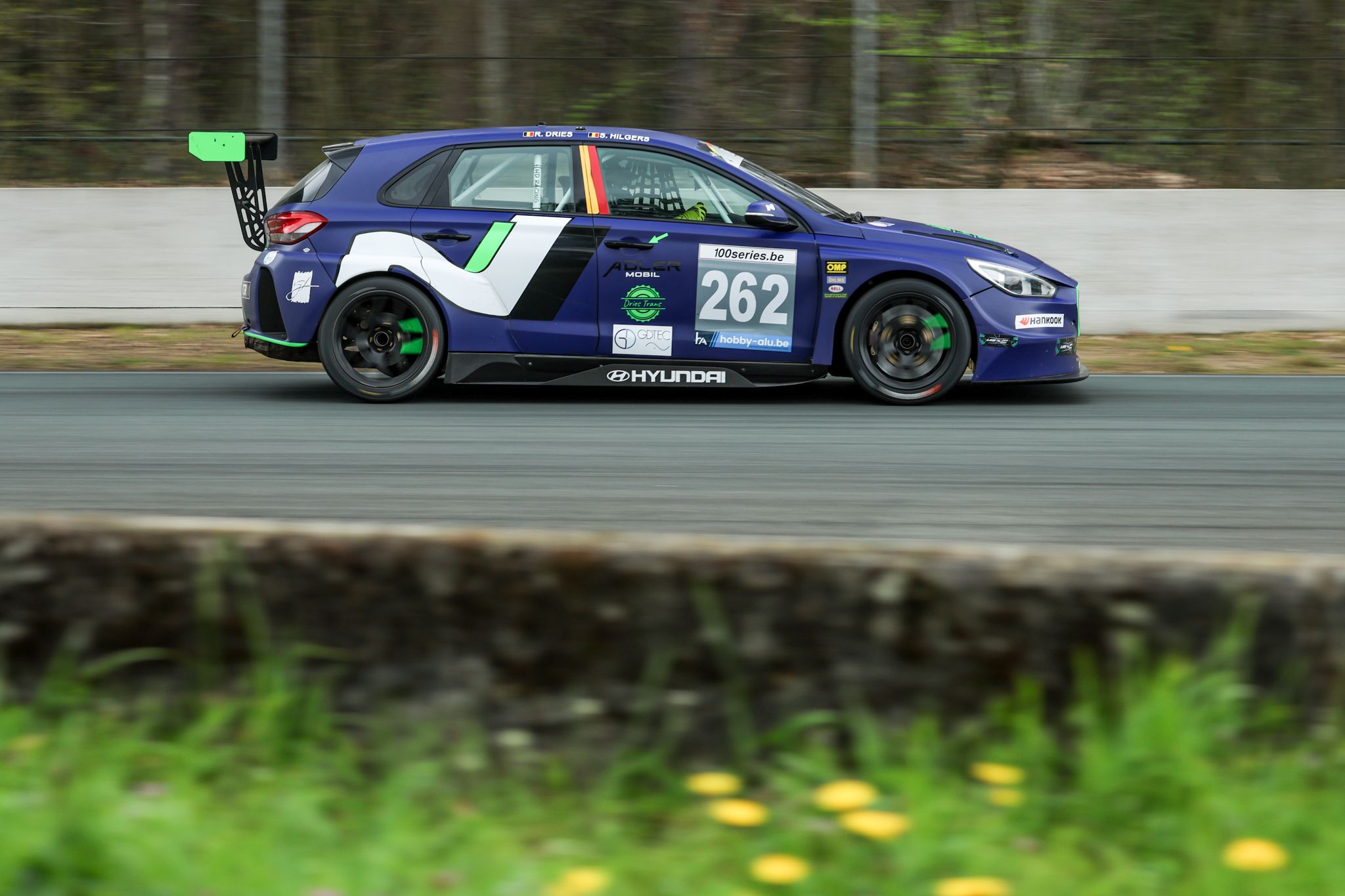 Sur le front de la Division 2, on a assisté à une belle domination de la Hyundai i30 TCR des Saint-Vithois Robin Dries et Samuel Hilgers, qui n’ont jamais quitté le leadership, d’autant que la concurrence n’a pas été épargnée par les problèmes, la Peugeot 308 Racing Cup Ghtechnology by Trackrecord rencontrant assez tôt des soucis de turbo qui allaient la handicaper jusqu’au bout de l’épreuve. C’est la BMW M2 Racing M3M Endurance Academy de Thibauld Geladé, Raphaël Dauw et Gil Linster, qui avait d’emblée décalé ses pit-stops en profitant de la première neutralisation juste après le départ, qui s’offrait les lauriers d’argent. Bonne entrée en matière donc pour ces jeunes loups accompagnés par le pilote luxembourgeois de l’Euro NASCAR. L’Alpine A110 Cup Kama Racing Team d’Alain Boveroux et Nicolas Busschaert, victime de soucis de pression de turbo, complétait le top 3 de la Classe E.