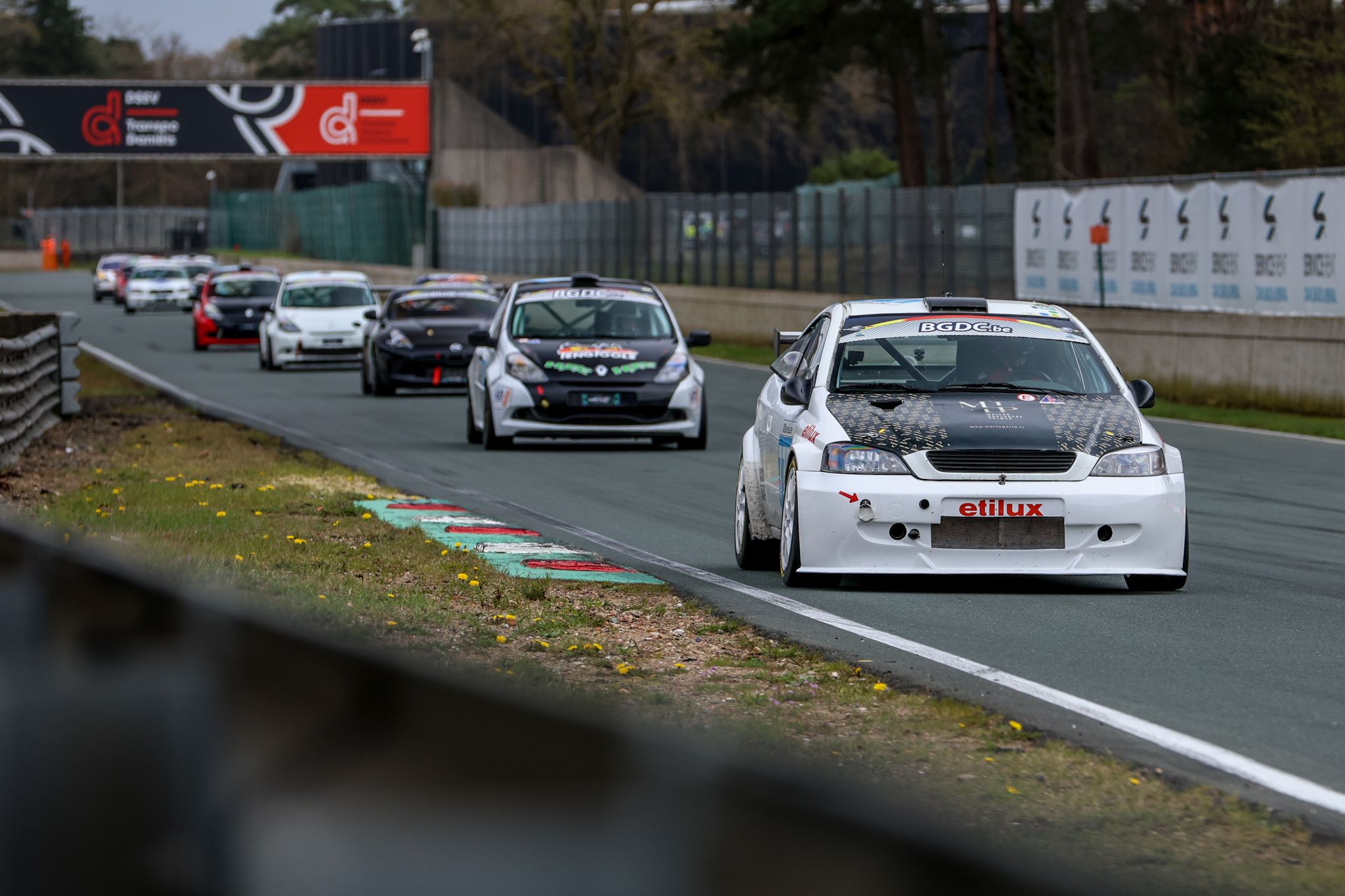 Une bonne trentaine de voitures était finalement présente sur la grille de départ en début d’après, suite aux forfaits de l’Audi RS3 LMS TCR JW Raceservice de Gielisse-Van Noordenne, de la BMW 130 GTR PK4FUN de Wouters-Little, mais aussi de la Peugeot Spider Silhouette Ca Roule Racing de Muller-Frère, hélas victimes de leur mécanique dès les essais. Quelques instants après le départ, la BMW 130i JW Raceservice de Roodbeen-Braker percutait le mur de pneus de la Chicane, ce qui entraînait une première neutralisation sous Full Course Yellow.