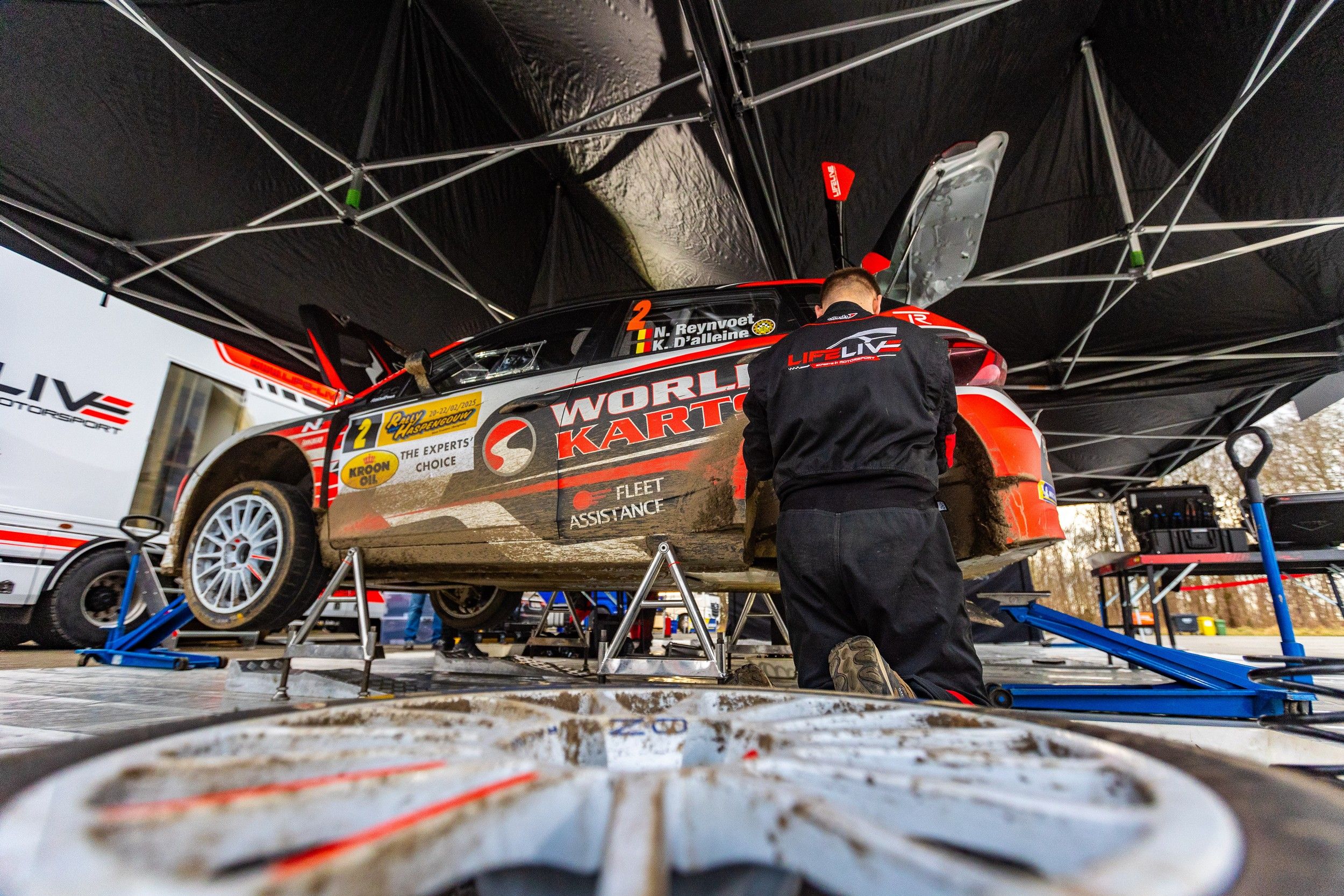 Après un shakedown disputé sur le sec, les quelques premières spéciales étaient nécessaires à Niels Reynvoet et son équipe pour mettre le doigt sur le bon setup. Le ton était cependant rapidement donné et dans le clan Lifelive Motorsport, on se montrait satisfaits des performances de Niels, omniprésent dans le top 3 absolu ! Mieux, dans le deuxième passage de la spéciale de Halle-Booienhoven, un premier scratch tombait dans l’escarcelle du team de Saint-Vith. De quoi propulser Reynvoet et D’alleine au 2e rang du classement provisoire...
