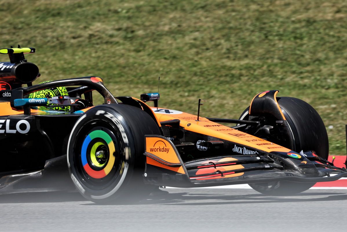 Malgré cette modification, c’est bien Lando Norris qui amenait sa McLaren, en pneus durs, à la première place à mi-séance (1’15’’258), deux gros dixièmes devant l’enfant du pays, Fernando Alonso (Aston Martin). Evidemment, avec le passage à la gomme tendre, les temps progressaient rapidement. Mais c’est une nouvelle fois Norris qui signait la meilleure marque (1’13’’718), le seul passant sous la barre de 1’14 au tour. Verstappen (Red Bull) prenait la deuxième place, à 367 millièmes devant les deux Ferrari d’Hamilton et Leclerc, respectivement à 378 et 520 millièmes. Piastri, cinquième, était repoussé à plus d’une demi-seconde.