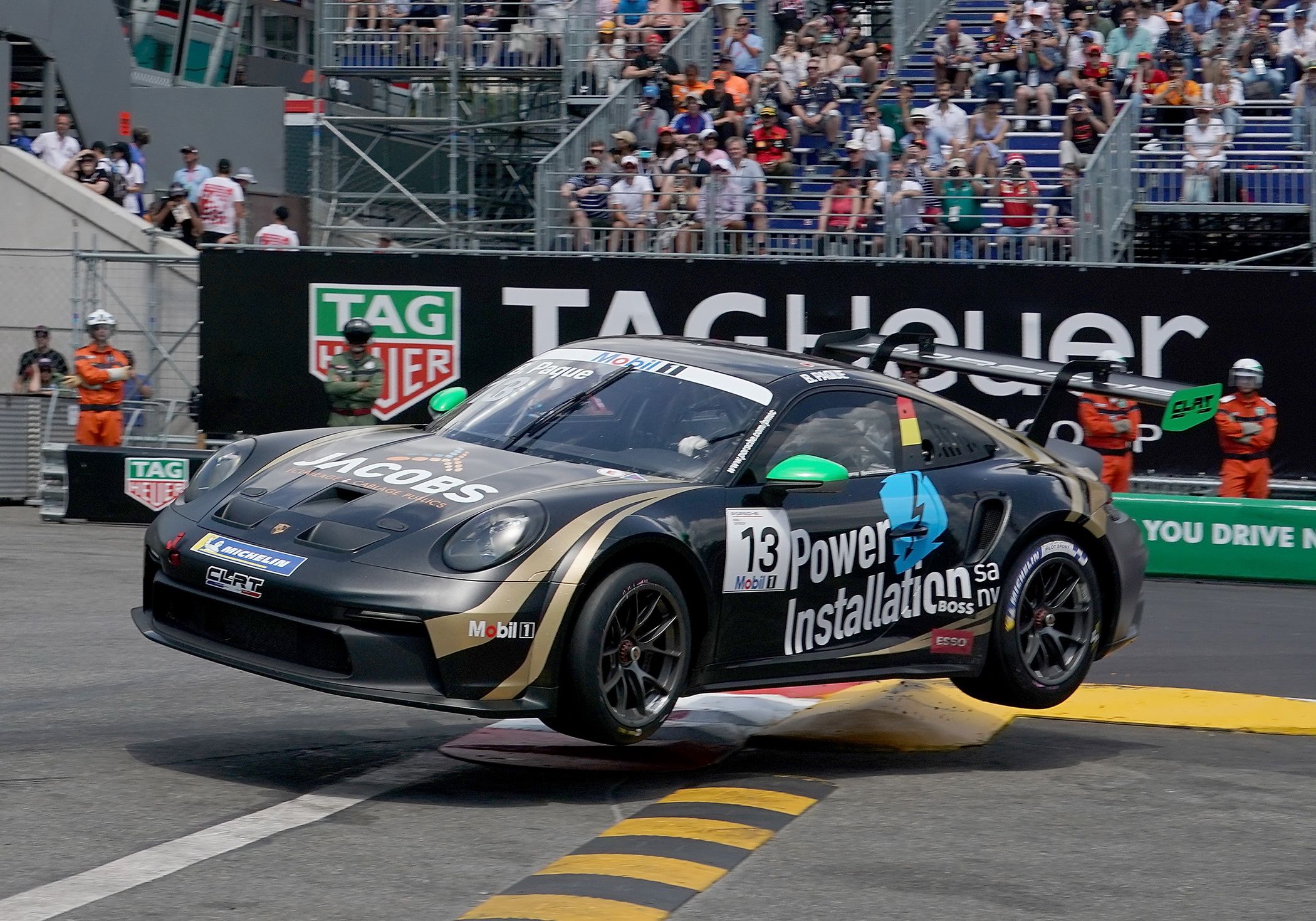 Après un bon débriefing avec les techniciens de CLRT, Benjamin pouvait se lancer à l’assaut des qualifications vendredi, faisant jeu égal avec les pilotes de la catégorie Pro-Am. Samedi, les Porsche ne prenaient pas la piste à Monaco, ce qui signifie que Paque devait attendre la course de dimanche, programmée à 12h05 sur 30 minutes, pour remonter une troisième et dernière fois en piste. Dès l’envol, Benjamin gagnait immédiatement deux places, avant d’éviter les coups et se distinguer par un passage ‘spectaculaire’ au niveau de la Piscine ! Dont les images étaient diffusées et rediffusées sur les écrans géants autour de la piste ! "J’étais en pleine bagarre, et j’ai abordé cette chicane en freinant un peu plus tard que les tours précédents, sourit Benjamin. De l’intérieur de l’habitacle, c’était moins spectaculaire que sur les images, et heureusement, ce ‘jump’ n’a pas altéré le comportement de la voiture pour le reste de la course…"
