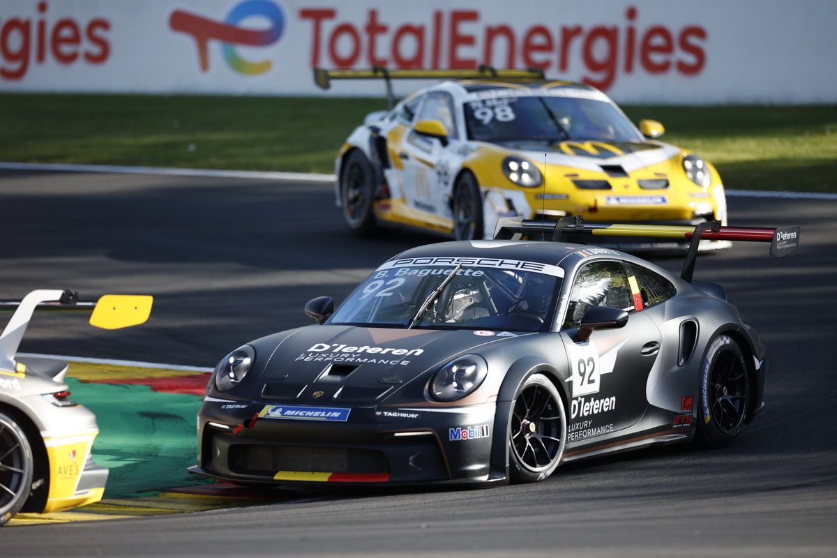 Disputée ce samedi dès 10h25, la Course 2 de la Porsche Carrera Cup Benelux a parfaitement souri à Bertrand Baguette, parti depuis la pole sous les couleurs de NGT Racing / D'Ieteren Luxury Performance, avant de parfaitement gérer les trois neutralisations consécutives à différents incidents, pour relancer et résister à la pression de Sam Jongejan (Team RaceArt), Nick Ho (PG Motorsport) et Jaap Van Lagen (Team raceArt) ! Après avoir repoussé un assaut plus viril de Jongejan au niveau des Combes, de quoi d'ailleurs renvoyer le Hollandais au 4e rang, Baguette a pu croiser jusqu'à l'arrivée, l'emportant devant Ho, Van Lagen et Jongejan. Vainqueur la veille, le Suédois Robin Knutsson (NGT Racing) a complété le top 5, réalisant évidemment une excellente affaire au classement du championnat !