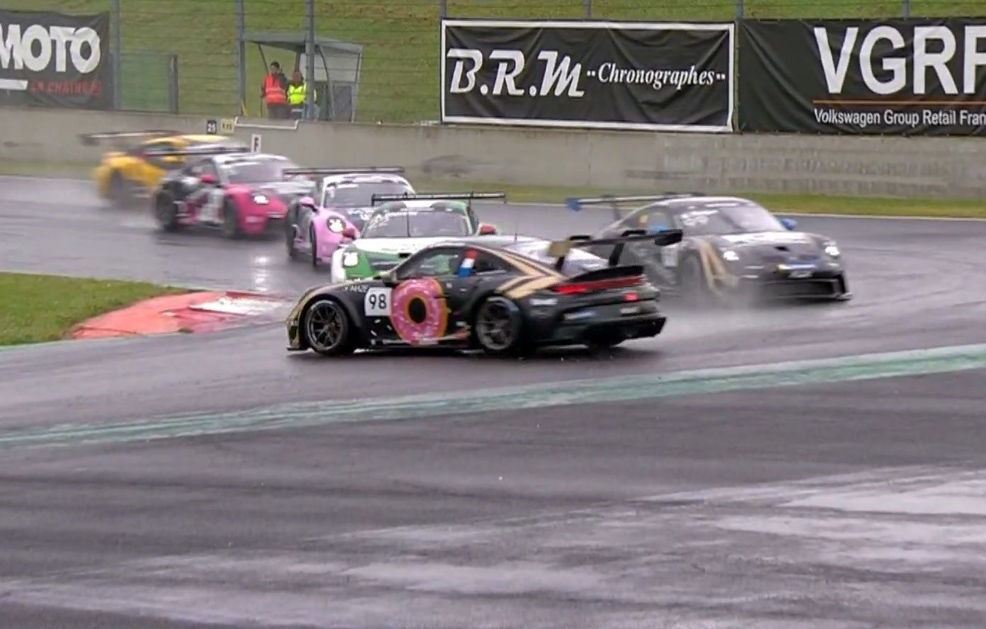 La deuxième course de la Porsche Carrera Cup France sur le Circuit de Nevers Magny-Cours n'a hélas pas souri à Benjamin Paque. Alors que la pluie était au rendez-vous, le jeune a loupé sa relance après une neutralisation, bloquant complètement ses roues pour venir percuter... Dorian Boccolacci, son propre équipier chez CLRT ! Si celui-ci a pu remonter en 6ème position, tandis que Marvin Klein (TFT) remportait la victoire devant Alessandro Ghiretti, le bilan des troupes de Come Ledogar est forcément décevant. "J'ai en effet tiré tout droit, en percutant Dorian, regrettait Benjamin. Le radiateur a cassé, et tout était fini. Il va de soi que le team est déçu puisque ce genre d'incident entre équipiers ne peut pas arriver. Cela n'arrivera d'ailleurs plus..."