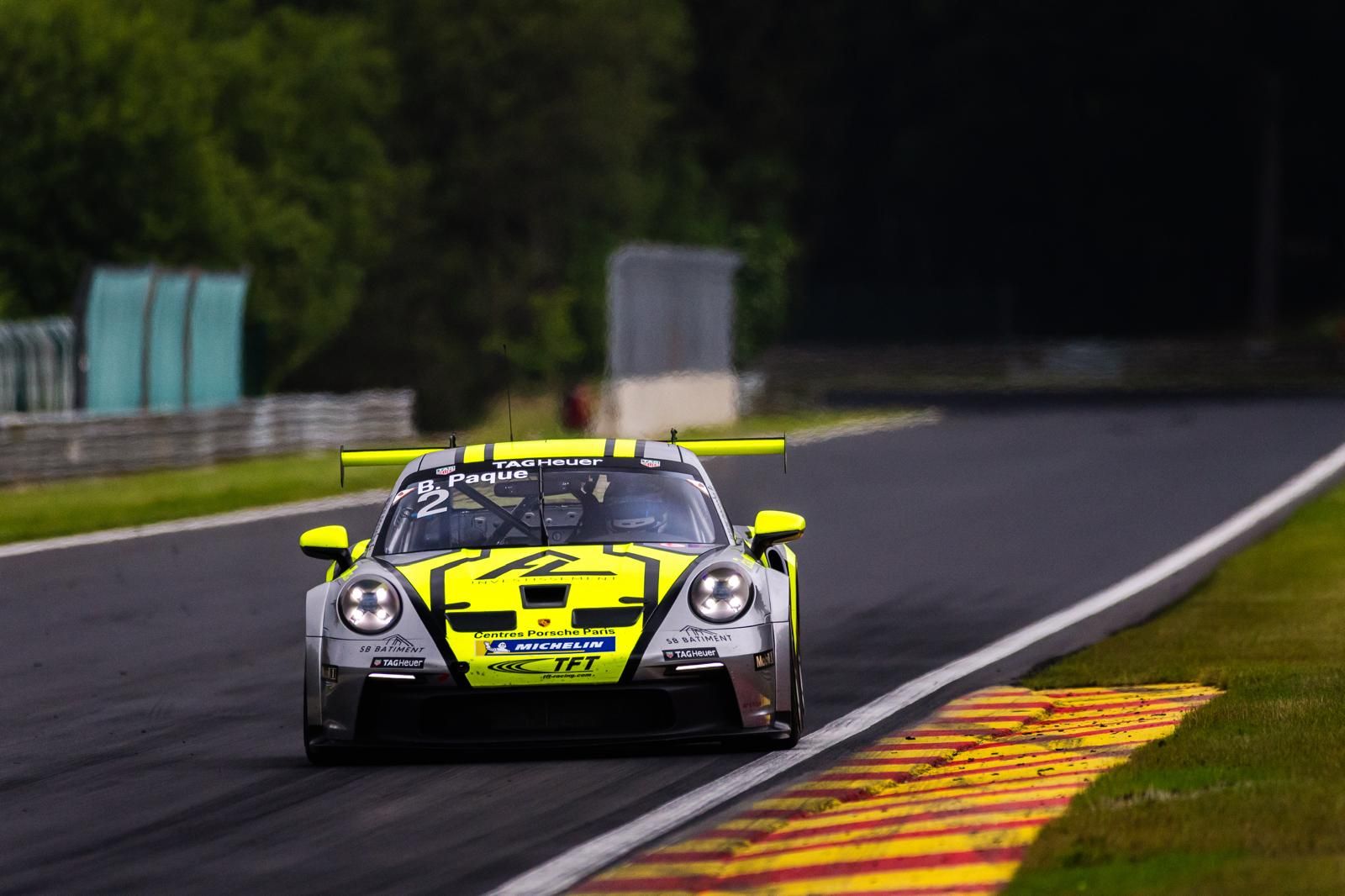 Parmi l'impressionnant programme de la SRO Speedweek ce week-end sur le Circuit de Spa-Francorchamps, la Porsche Carrera Cup France permet à Benjamin Paque, pilote TFT Racing dans l'Hexagone, de retrouver la piste sur laquelle il s'est imposé dans le cadre de la Porsche Carrera Cup Benelux lors de la venue du FIA WEC. Ce vendredi, deux séances d'essais libres figuraient au programme, et si le Liégeois a utilisé des pneus usagés lors du FP1, il a nettement amélioré son score l'après-midi, soignant également le set-up. Paque a signé le 3ème meilleur temps, à 0"9 de Dylan Pereira (Martinet by Almeras), qui a fait parler son expérience de la Porsche Mobil 1 Supercup. Difficile néanmoins de savoir qui a déjà passé des pneus performants et qui se réserve pour la suite.