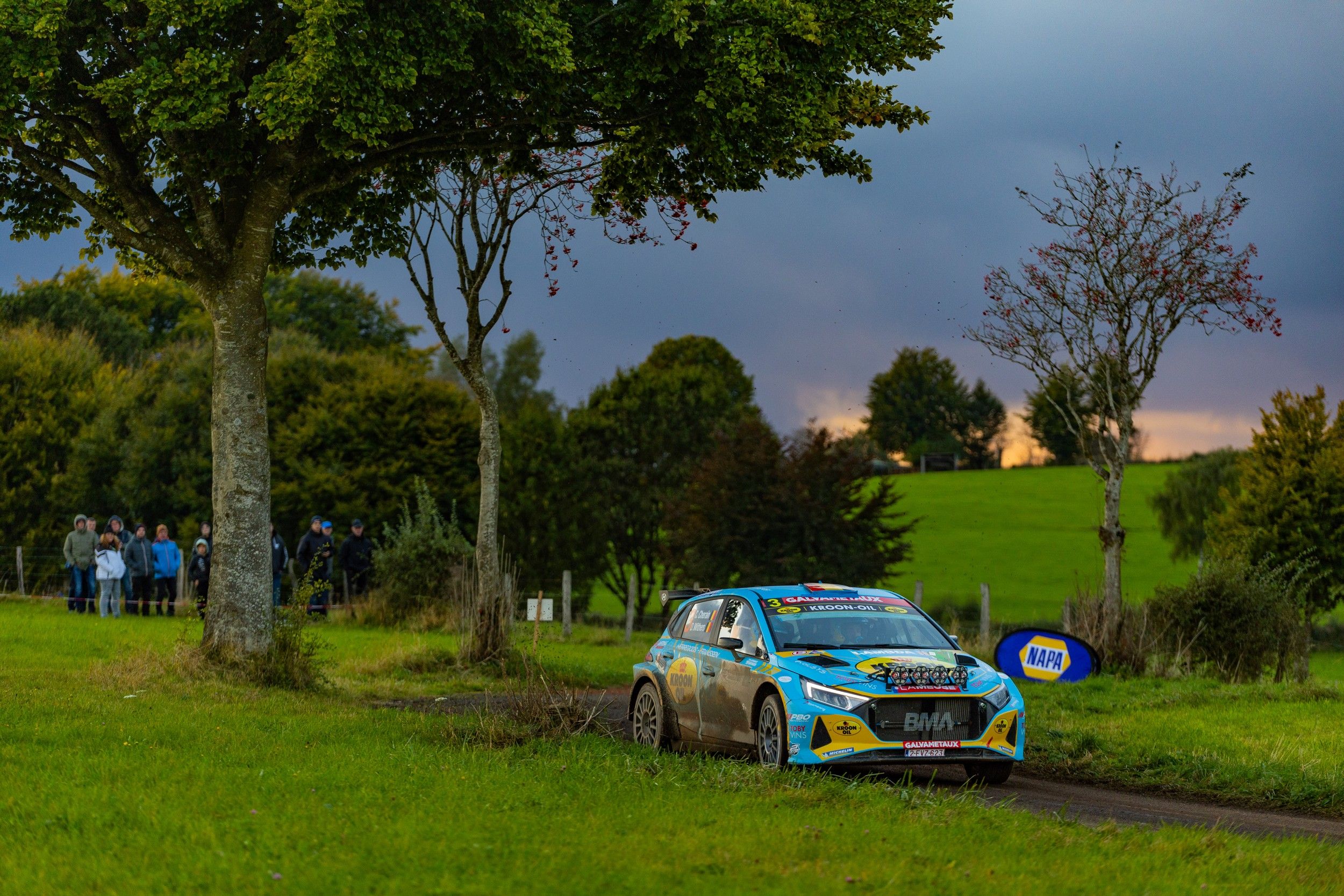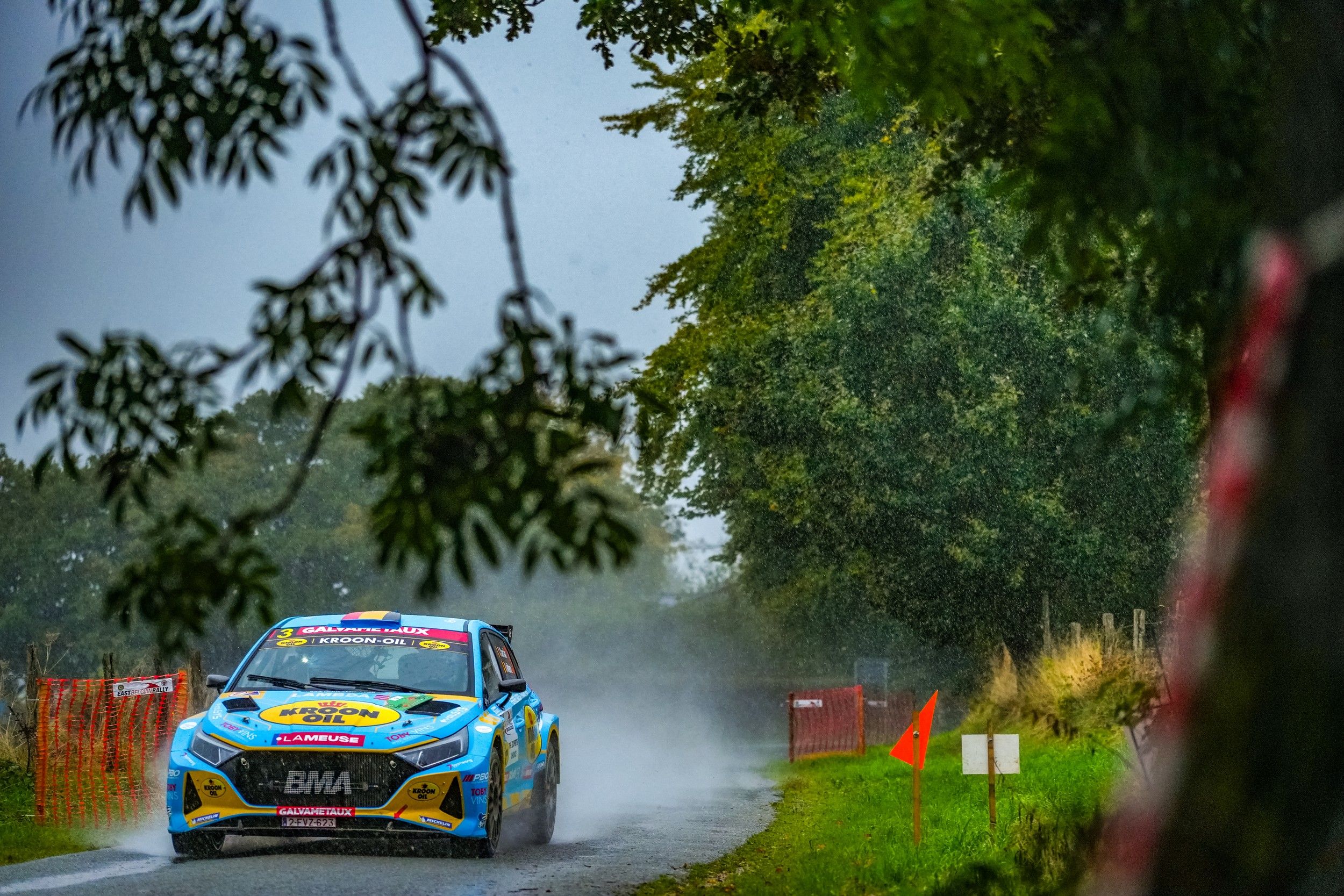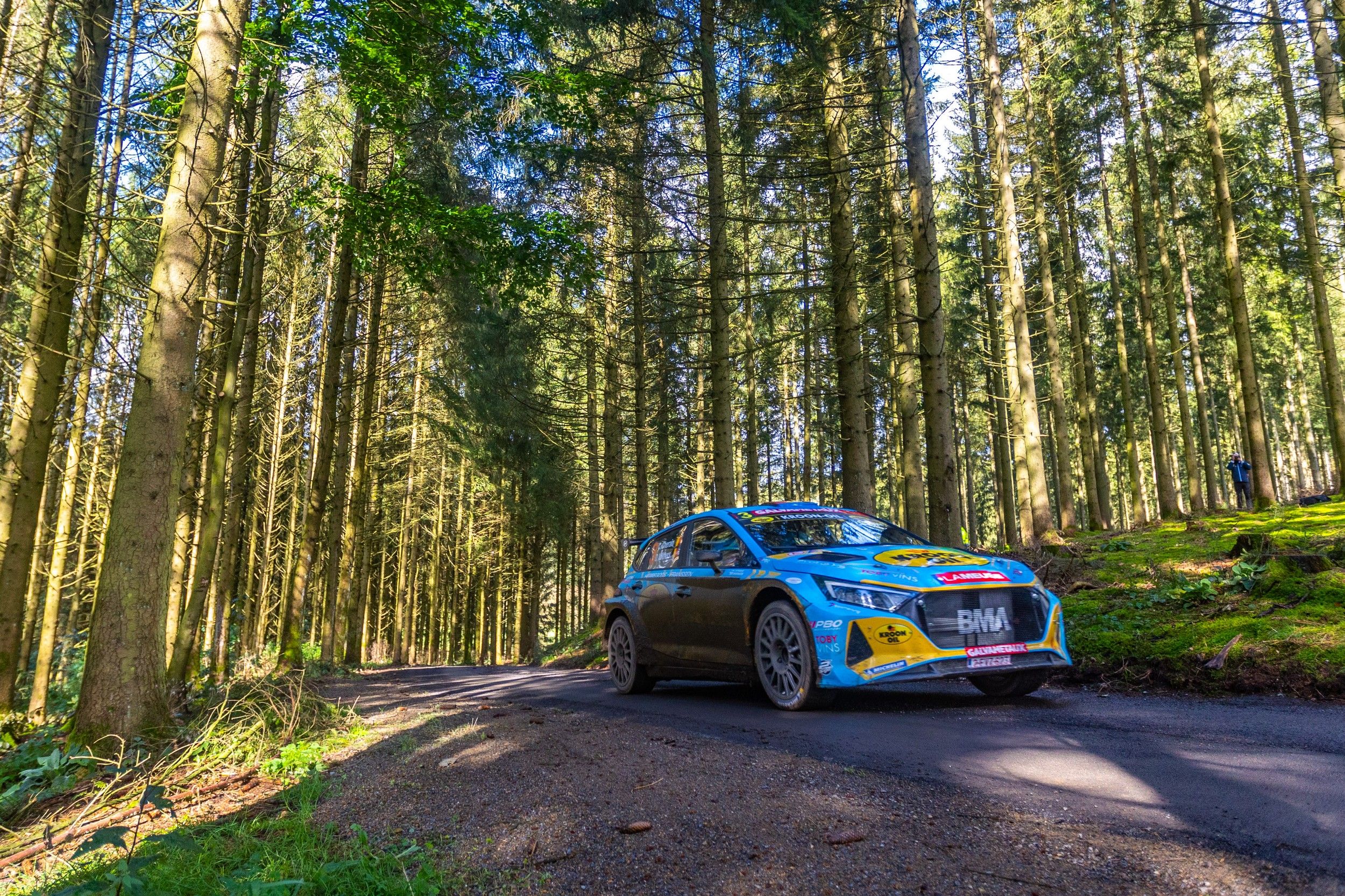 Le parcours naturel de l’East Belgian Rally, dans la région de Saint-Vith, compte parmi les préférés de Cédric Cherain. En signant les trois premiers scratches du jour ce samedi, le pilote de la Hyundai i20 N Rally2 BMA le démontrait allègrement. Un leadership néanmoins mis à mal dans l’ES4 Burg Reuland 1, tronçon particulièrement boueux.