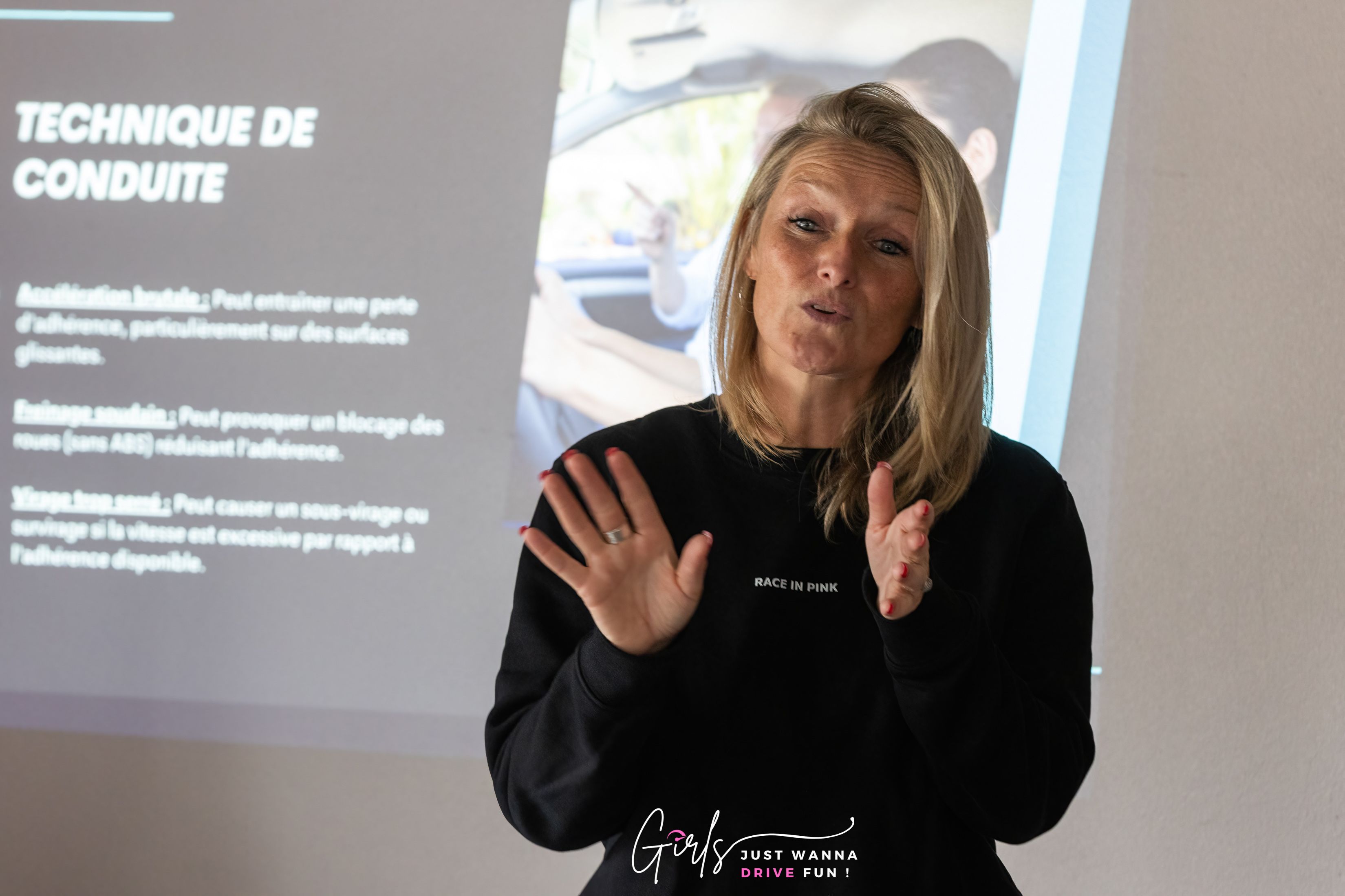 En décembre 2023, Evelyne François a en effet fondé ‘Girls Just Wanna Drive Fun !’, agence rapidement devenue un acteur incontournable de l’expérience automobile destinée aux femmes. Dépassement de soi, convivialité et adrénaline rythment les différents événements organisés – 25 pour la seule année 2024 ! -, qu’il s’agisse d’initiatives karting en présence de coachs féminines, de stages de pilotes sur circuit ou baptêmes de piste sur la piste de Mettet (Mettet XP) avec Speed4Fun, d’expériences de ‘car control’ au Centre de Maîtrise du Volant ou à la Precision Drive Experience de Mettet XP, sans oublier des workshops mécaniques en collaboration avec SRS – Support & Racing Services – à Mettet.