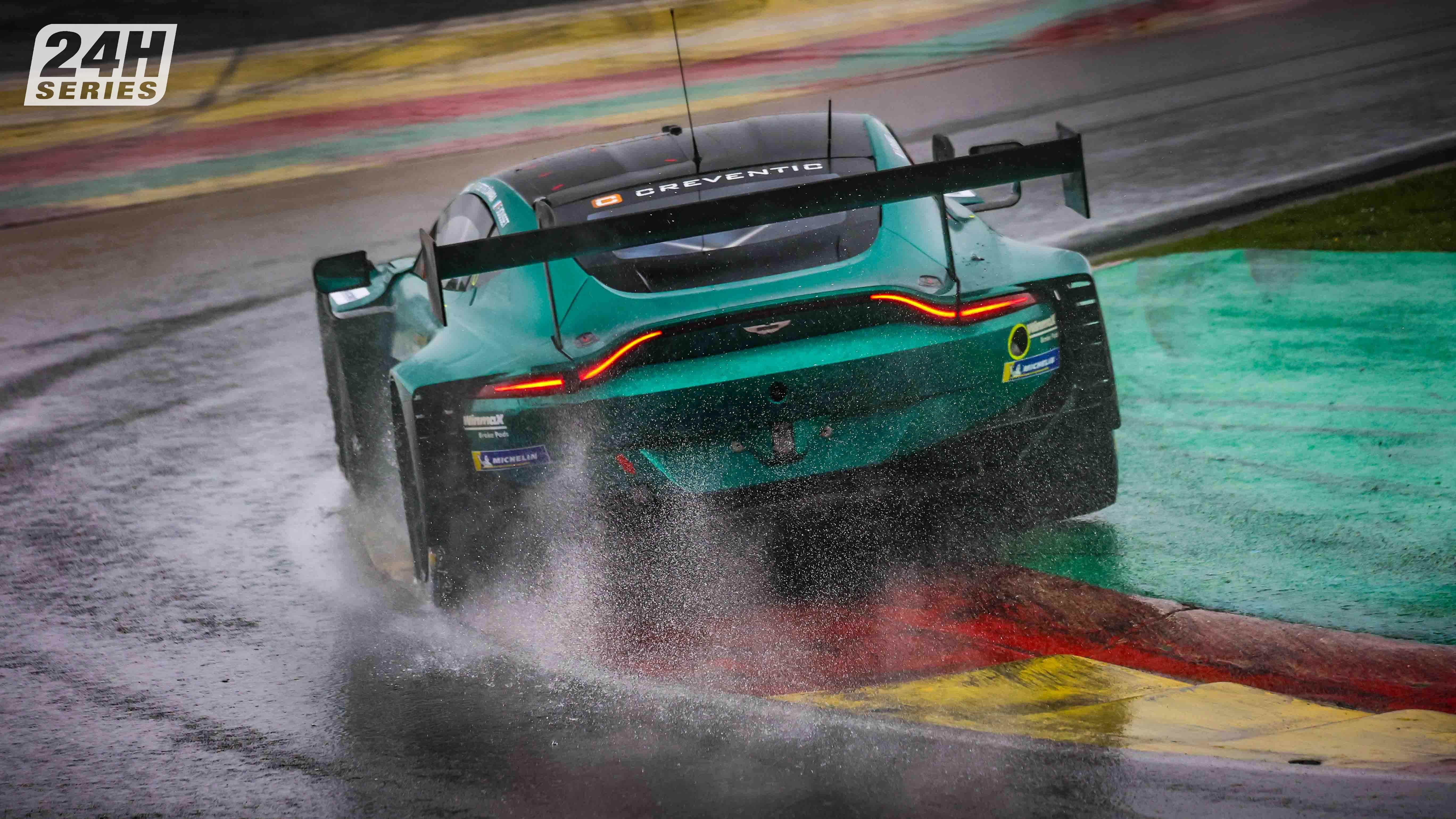 Mauvaise nouvelle pour les fans d'endurance, dès l'instant où l'Aston Martin Vantage AMR GT3 EVO Comtoyou Racing attendue aux départ des Michelin 12H Spa-Francorchamps ce week-end... n'en sera finalement pas ! Ce jeudi, lors d'essais privés disputés par une météo compliquée, le Français Frédéric Rousset est sorti de la piste dans le Raidillon, occasionnant de sérieux dommages à la belle anglaise. Qui ne peut être réparée. Résultat : forfait ! Ce qui va nous priver de la présence en piste de Sergio Sette Camara et Sebastian Alvarez, qui devaient faire du roulage en vue des CrowdStrike 24 Hours of Spa. 34 voitures figurent finalement sur la liste des engagés en vue des Michelin 12H Spa-Francorchamps... (Vincent Franssen / Photo 24H Series)