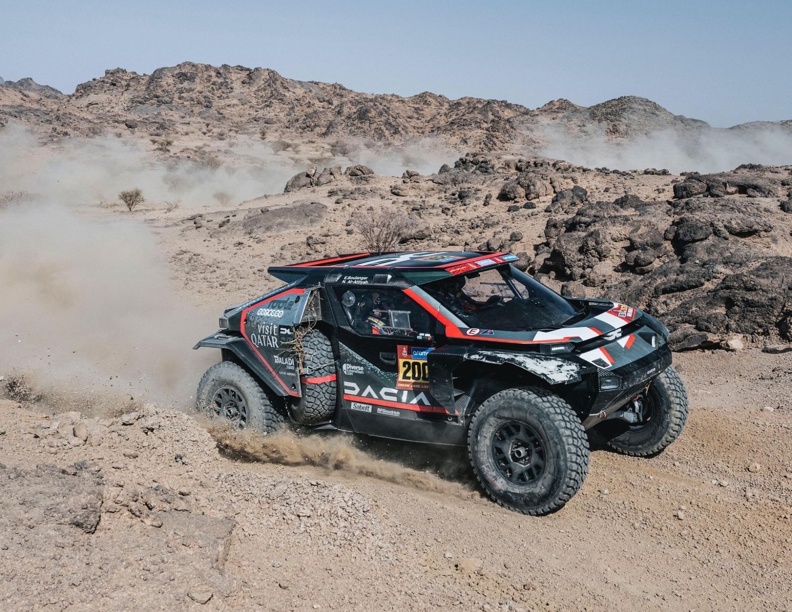 Et contrairement à la veille, ce sont les favoris qui répondent présent et passent à l'attaque. Au km 288, Nasser Al-Attiyah (Dacia) était en effet leader devant Yazeed Al-Rajhi (Toyota, 3'48"), Sébastien Loeb et Fabian Lurquin (Dacia, 4'34"), l'étonnant Toby Price (Toyota, 6'52"), Guillaume de Mévius (Mini, 6'59"), Nani Roma (Ford, 7"30"), Carlos Sainz (Ford, 8'41"), Mattias Ekström (Ford, 9'02") et Henk Lategan (Toyota, 10'47"). Ce qui signifie que virtuellement, Sainz et de Mévius se battent pour la tête de la course, dès l'instant où hier soir, certains concurrents ont écopé de pénalités pour vitesse trop élevée au passage de 'Slow Zones', Sainz et Chicherit prenant ainsi 10 secondes supplémentaires.