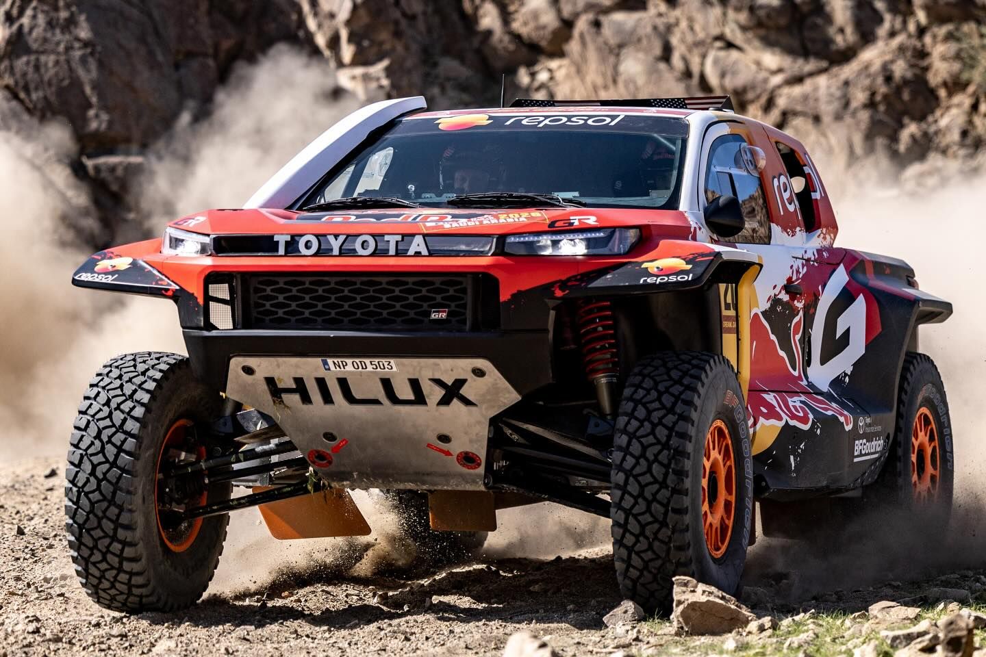 Si les Toyota Hilux avaient été plutôt discrets ce dimanche lors de la première étape du Dakar 2026, ils se sont plus que rattrapés ce lundi entre Yanbu et Al'Ula, au terme de 400 kilomètres contre le chrono ! Au point de monopoliser le top 5 de l'étape du jour ! Jean-Marc Fortin, qui gère les troupes nipponnes, avait dit que bien des choses pouvaient changer aujourd'hui, il ne s'était pas trompé ! Et ce sont les nouveaux Hilux GR signés Christian Loriaux qui ont brillé, le scratch revenant à l'Américain Seth Quintero, qui a devancé son équipier Henk Lategan (Toyota Hilux GR) de 1'42" ! Suivent Yazeed Al-Rajhi (Toyota Overdrive, 1'56"), qui a déjà entamé sa remontée, Toby Price (Toyota Hilux GR, 4'36") et Joao Ferreira (Toyota Gazoo Racing South Africa, 4'56") ! Impressionnant...