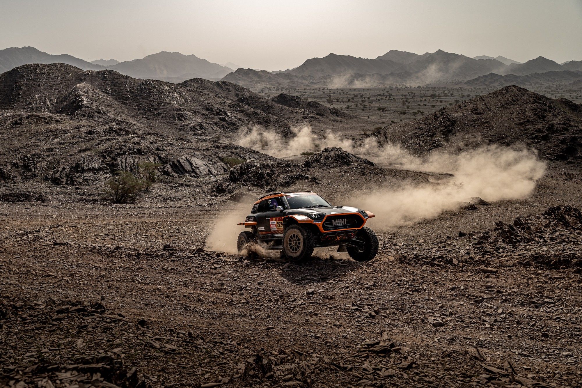 Après leur victoire d'hier à Yanbu, Guillaume de Mévius et Mathieu Baumel ont eu le 'privilège' d'ouvrir la route ce lundi au fil des 400 kilomètres de chrono menant à Al'Ula. Une position que le Mini JCW Rally X-raid n'a en fait jamais quittée de la journée. Résultat : un 12e meilleur chrono, mais à 8'20" seulement du scratch de Seth Quintero (Toyota). Et une petite glissade de la 1ère à la 3e place du général provisoire, à une bonne minute des nouveaux leaders Nasser Al-Attiyah et Fabian Lurquin (Dacia).