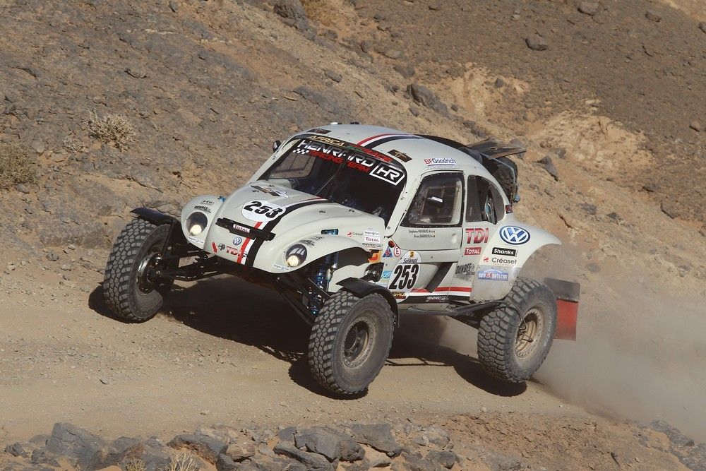 Ce produit a d'ailleurs beaucoup évolué depuis la naissance du projet. "Il a énormément évolué même, enchaîne Stéphane. Le DunBee est désormais bien plus facile à piloter et plus amusant tout en affichant une grande fiabilité grâce à notre travail de mise au point avec une mécanique Volkswagen TDI restée assez proche de l'origine pour être peu coûteuse. Construit en Belgique, dans nos ateliers de Rhode-Saint-Genèse, le DunBee est un petit cousin des gros Buggies qui joueront la victoire. Après notre podium lors de la dernière Africa Eco Race, nous estimons aujourd'hui que le DunBee est en mesure d'affronter le Dakar. Et avec son look sympa de Coccinelle, il cadre d'ailleurs également très bien avec l'esprit dans lequel de nombreux gentlemen-drivers veulent disputer les épreuves de rallye-raid. En plus de posséder un look indémodable, sans être excessif à aucun niveau, le Buggy DunBee a un capital sympathie réellement colossal. Grâce à l'évolution des règlements techniques et des parcours, les Buggys ont réellement trouvé leur place dans le rallye-raid et proposent, aujourd'hui, le meilleur compromis entre plaisir, performances, coût, confort, fiabilité et facilité de pilotage, surtout avec une mécanique turbo-diesel comme la nôtre."