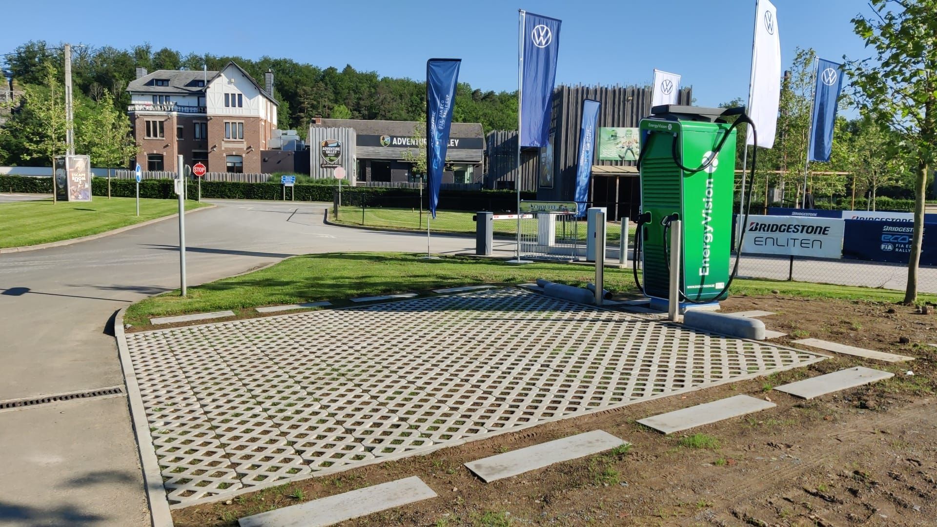 Signalons que l’installation EnergyVision du parc Adventure Valley de Durbuy est la première du genre en province de Luxembourg. Les quelque 2480 panneaux photovoltaïques, qui produisent chaque année 1,5 million de kWh, permettent d’alimenter 30 bornes de recharge AC de 11 kw et 2 superchargers DC de 300 kw. Un dispositif unique dont vont pleinement profiter les concurrents de l’E-Rallye Ardenne Roads by Volkswagen ID.