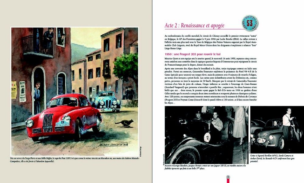 Dans la foulée de l'ouvrage consacré à Stéphane Prévot signé Dominique Dricot, c'est un autre incontournable en vue des fêtes de fin d'année qui a été présenté ce dimanche matin lors de la traditionnelle bourse de véhicules anciens du Rétromobile Club de Spa. A la rédaction de ce livre consacré au Liège-Rome-Liège, au Liège-Sofia-Liège et au Marathon de la Route, on retrouve Eric Faure, journaliste liégeois profitant désormais d'une retraite active, qui a eu les yeux admiratifs en assistant à l'arrivée de l'édition 1954 en compagnie de ses parents. Quelques longues décennies plus tard, le gamin s'est penché sur le cas de cette épreuve hors normes, quelle que soit son appellation, pour nous proposer un parfait résumé publié chez Benoît Deliège Editions, et donc partiellement illustré des dessins de l'éditeur.