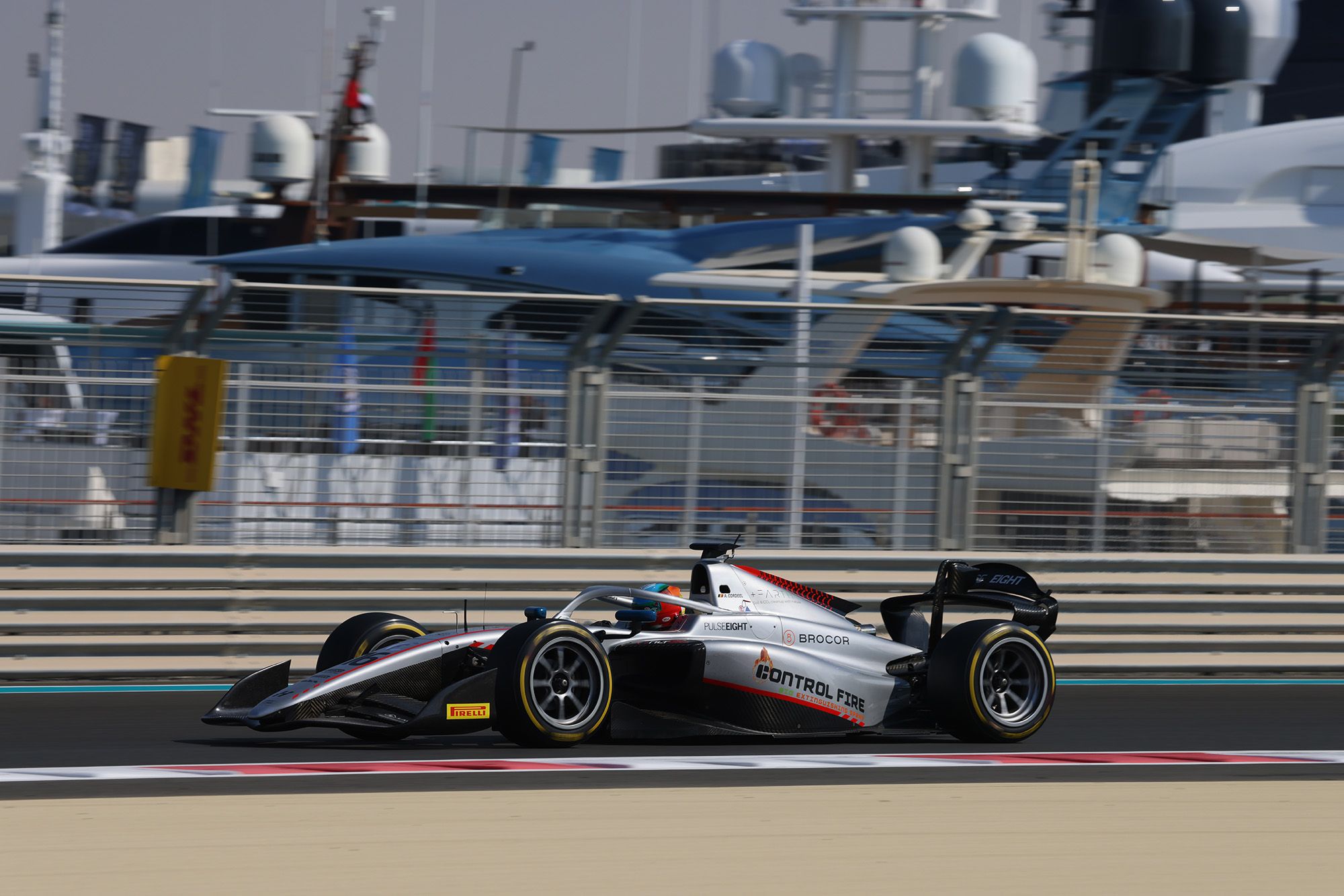 Amaury Cordeel (Hitech) n’a pas mené longtemps la course sprint du Grand Prix d’Abu Dhabi. Juste le temps du tour de chauffe en fait, car dès le premier virage, le jeune Belge se faisait déborder par Durksen (Aix GP) mais surtout Marti (Campos) et virait en troisième position. Juste après, il cédait même face à Maini (Invicta) au freinage de la chicane. Le premier tour était des plus agités, avec un contact au premier virage entre Maini et Hadjar (Campos), avec aussi un tête-à-queue de Martins (ART GP) poussé par Miyata (Rodin) à la chicane.