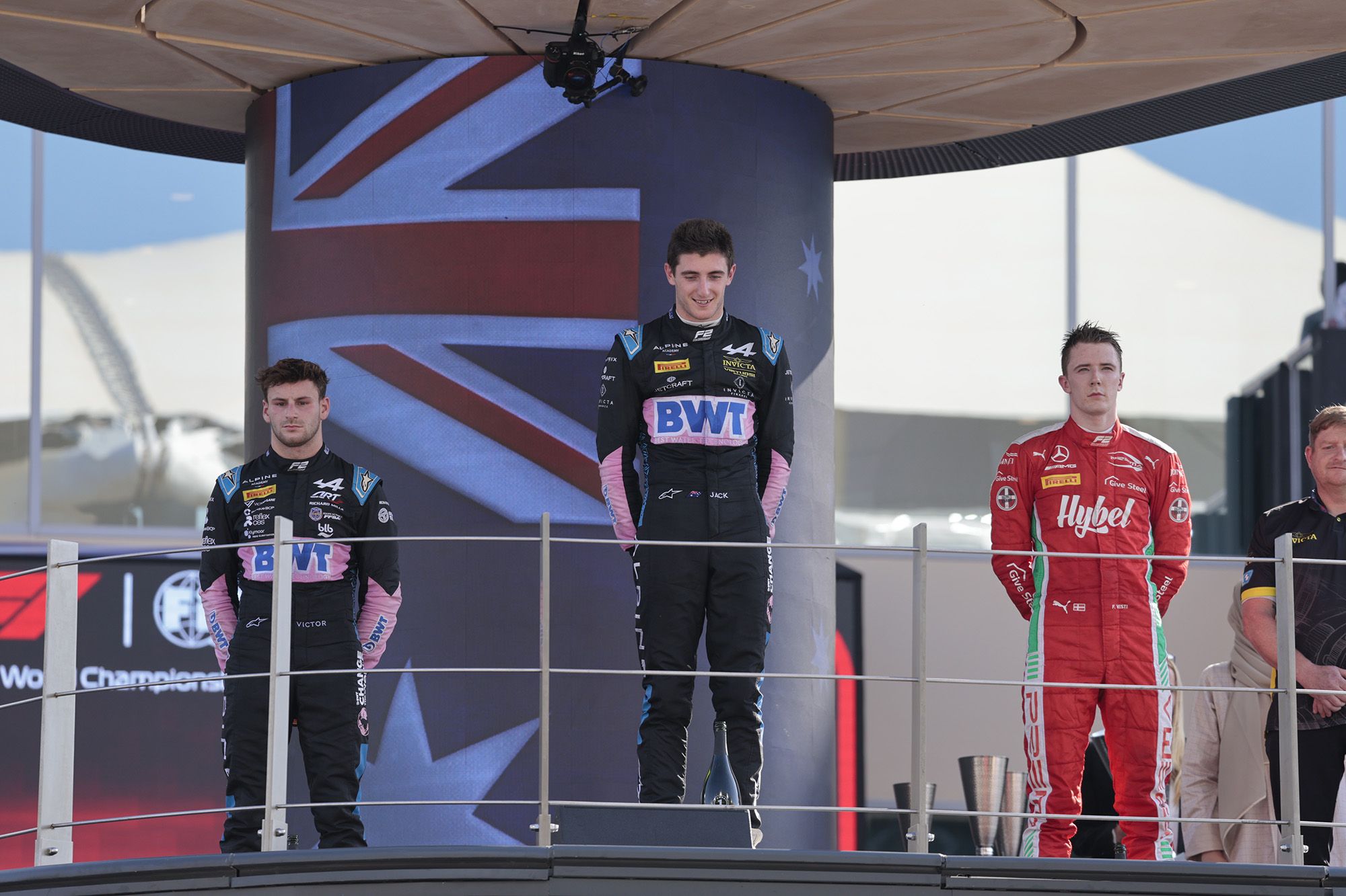 Quand Vesti trouvait enfin la faille, c’était trop tard. Certes, le Danois débordait Iwasa en perdition, mais le trio de tête était trop loin. Après une courte neutralisation sous VSC, Vesti, dans un dernier effort, remontait sur Maloney dans l’ultime tour, et l’attaquait dans la parabolique au fond du circuit. Les deux hommes allaient au contact, le pilote de la Barbade partait en tête-à-queue quand Vesti décollait sur le vibreur extérieur, flirtait avec le mur avant de revenir sur la piste pour assurer la 3ème place, derrière les intouchables Jack Doohan et Victor Martins. L’Australien profitait de cette troisième victoire pour arracher la 3ème place du podium final à Iwasa.