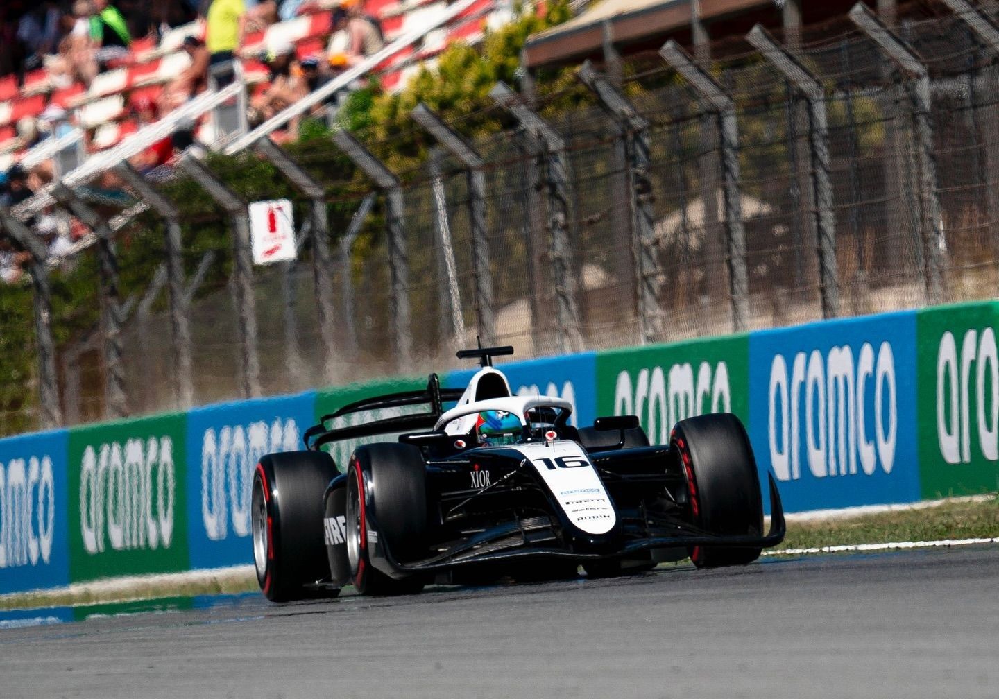 Départ plutôt calme pour la course longue du Grand Prix d’Espagne de Formule 2. Avec le poleman, Arvid Lindblad (Campos) qui prenait le meilleur départ devant Montoya (Prema), Verschoor (MP Motorsport), Stanek (Invicta) et Browning (Hitech) pour ce qui est du top 5, alors que dans le peloton, Crawford (DAMS) et Dunne (Rodin) faisaient le choix de partir en gommes dures. Maini (DAMS), en durs, manquait complétement son envol, pointant à la douzième place au terme du premier tour.