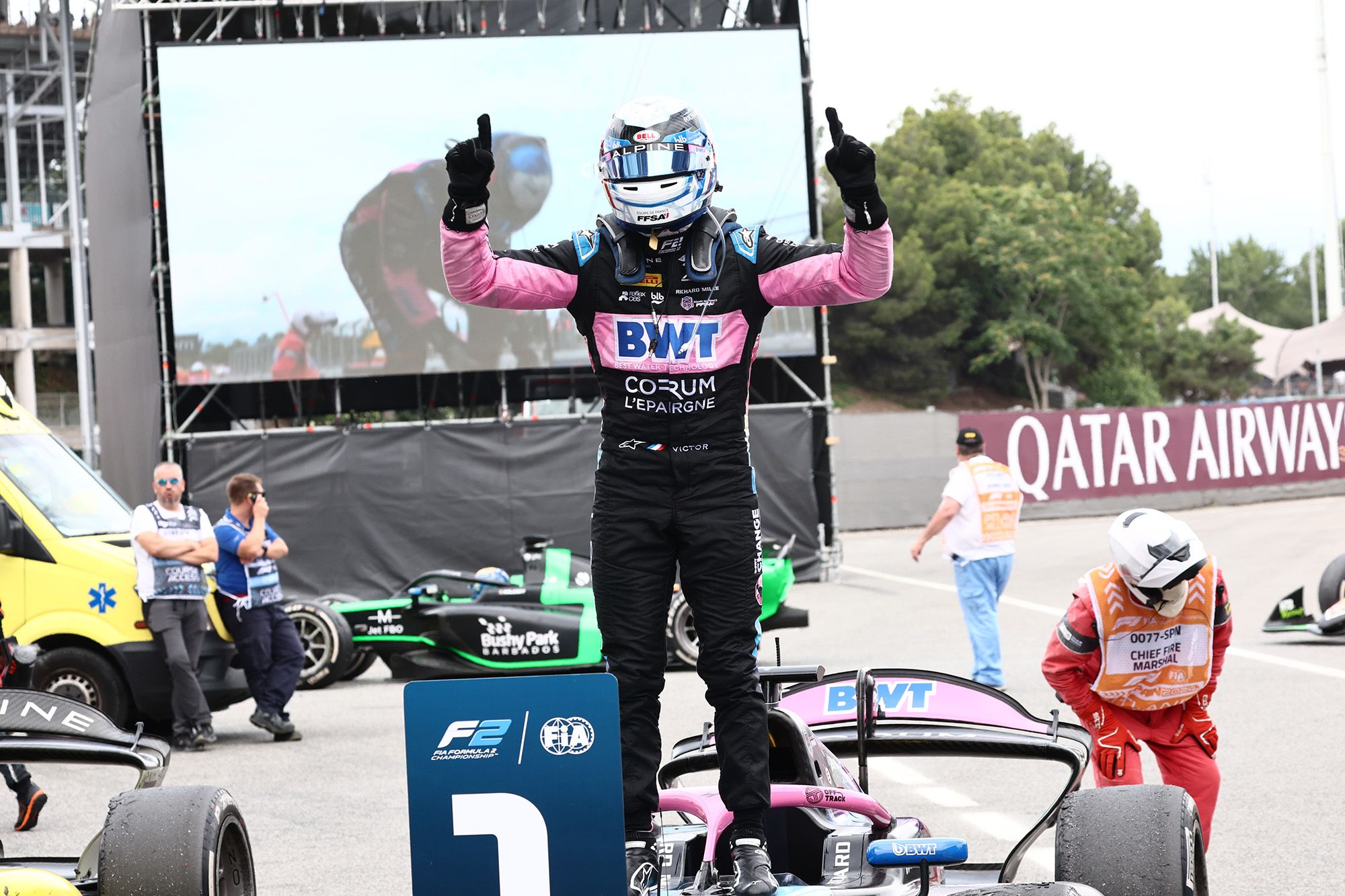 Devant, par contre, pas de problème pour Martins qui signait donc sa deuxième victoire en F2 sans être inquiété. Mais derrière, Miyata héritait comme d’autres un peu plus loin dans le peloton d’une pénalité pour Track Limits, qui le rejetait à la 8ème place. Maini prenait donc la 2ème place devant Correa et ses suivants, à savoir Aron, Crawford, Bortoleto et Hadjar.