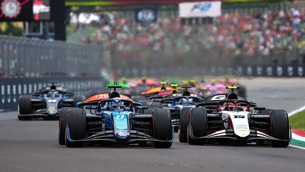 Initialement, Jack Crawford (DAMS) devait s’élancer en pole position de la course sprint d’Imola. Mais avec le déclassement de Maini (DAMS), c’est Miyata (ART GP) qui héritait de cette place préférentielle. L’Américain retrouvait cependant son bien en débordant le Japonais avant le premier virage, avec dans leur sillage Lindblad (Campos), bien parti, Browning (Hitech), Martins (ART GP), lui aussi auteur d’un bel envol, Dunne (Rodin), Fornaroli (Invicta) et Beganovic (Hitech). Le Suédois ne restait pas longtemps en 8e position débordé par un excellent Durksen (Aix GP), revenu de la 14e place.