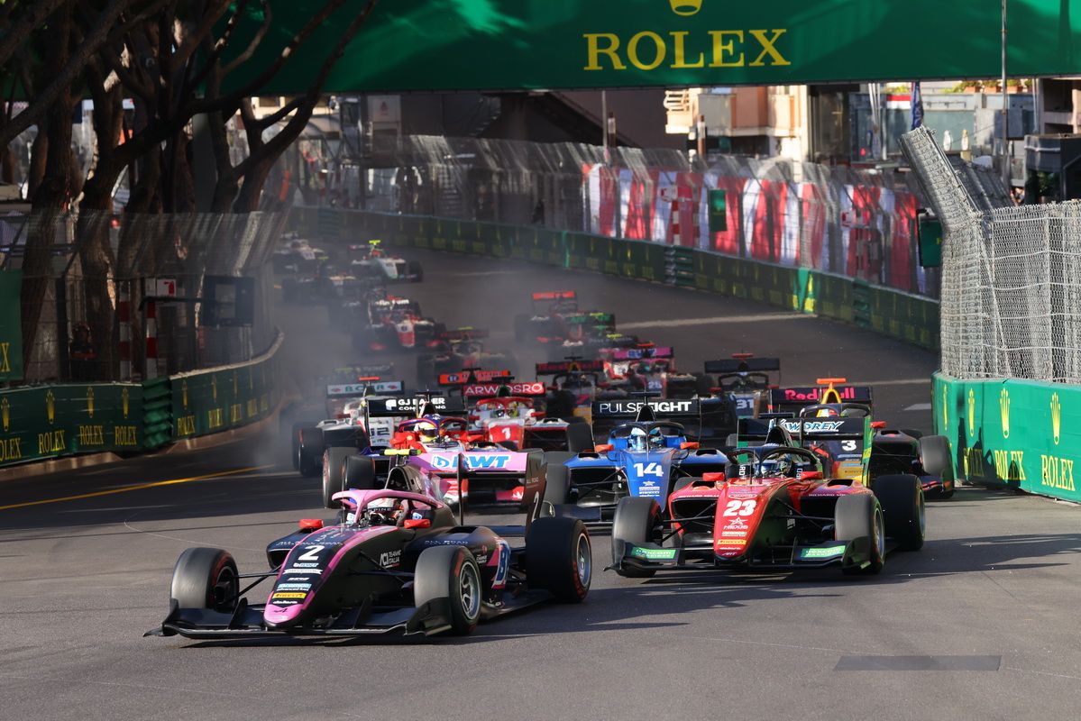 Avec le principe de la grille inversée, c’est une première ligne complètement ART GP qui s’élançait en tête de la course sprint dans le cadre du Grand Prix de Monaco ce samedi, avec Tsolov et Van Hoepen côte à côte. Le second manquait cependant son départ et se faisait d’entrée déborder par Tramnitz (MP Motorsport) avant même le passage à Sainte-Dévote, étonnamment calme. Le grabuge survenait à l’entrée du virage du Casino quand Lindblad (Prema) tassait Mansell (ART GP) contre le rail. Le contact obstruait une partie de la piste et prenait au piège Dunne (MP Motorsport), Dufek (AIX GP) et Shields (Hitech), imposant la Safety-Car d’abord et même le drapeau rouge pour évacuer les monoplaces endommagées. Les positions étaient figées, dans l’ordre Tsolov, Tramnitz, Van Hoepen, Leon (Van Amersfoort), Loake, Boya (Campos), Beganovic (Prema), Browning (Hitech) qui avait débordé Fornaroli (Trident) dans Massenet et Goethe (Campos).