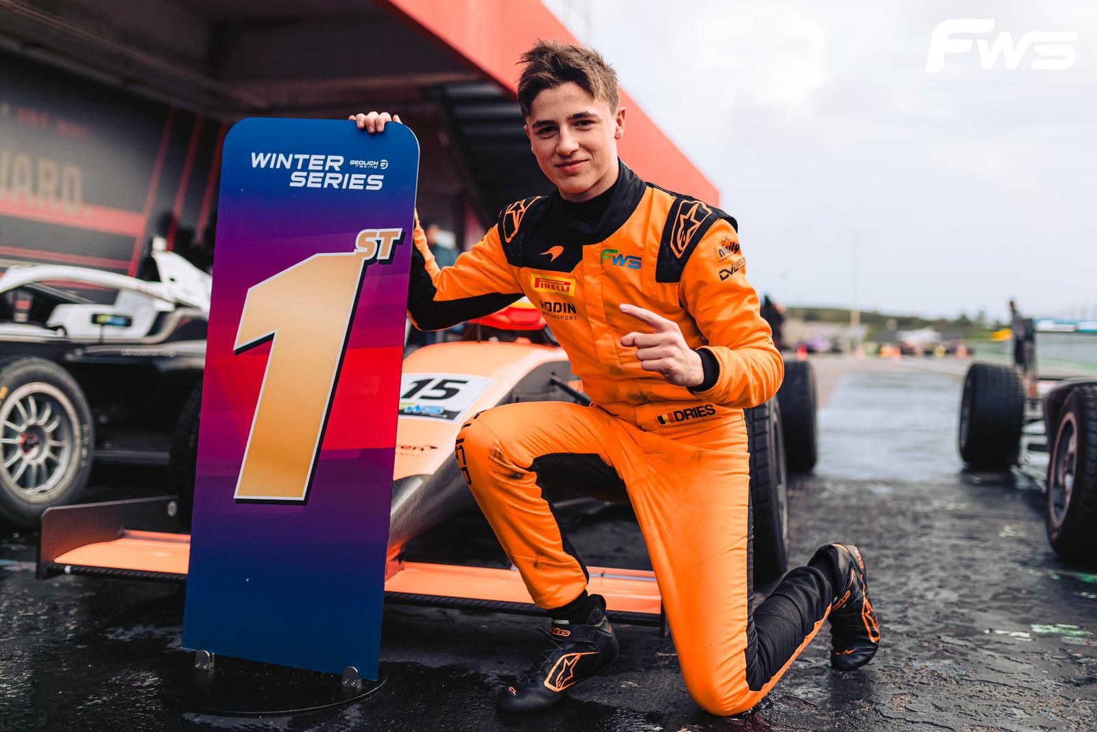 La Formula Winter Series a connu son deuxième rendez-vous à Portimao, Portugal, ce week-end. Et pour Dries Van Langendonck, les choses se sont une fois encore bien déroulées. Qualifié en 2e position en vue de la Course 1, le jeune Belge du clan Rodin Motorsport calait à même la grille de départ, avant de se lancer dans une folle remontée, passant de la 27e à la 7e place finale ! La suite était nettement meilleure encore, avec la victoire en Course 2 et Course 3 ! Déjà leader de la compétition après le premier rendez-vous d'Estoril, le jeune Belge protégé de McLaren est plus que jamais candidat au titre dans cette série destinée à préparer la saison sportive 2026... (Vincent Franssen / Photo Formula Winter Series)