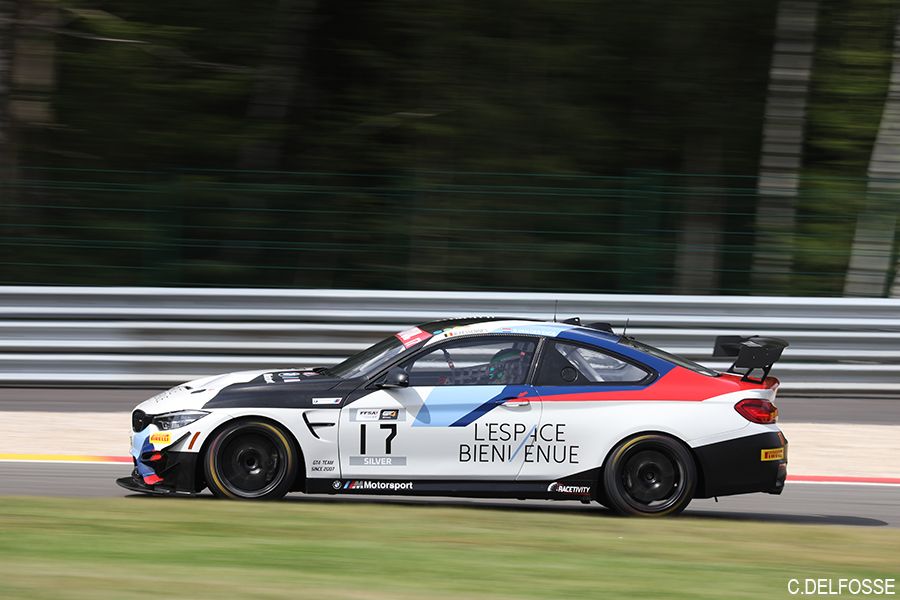 Remontés depuis la dernière place sur la grille de départ après leurs ennuis électroniques lors des essais qualificatifs, Benjamin Lessennes et Ricardo van der Ende (BMW M4 GT4 #17 – L’Espace Bienvenue) ont plus que limité les dégâts au championnat en prenant les points de la 5ème place. (Vincent Franssen / Photos Cédric Delfosse)