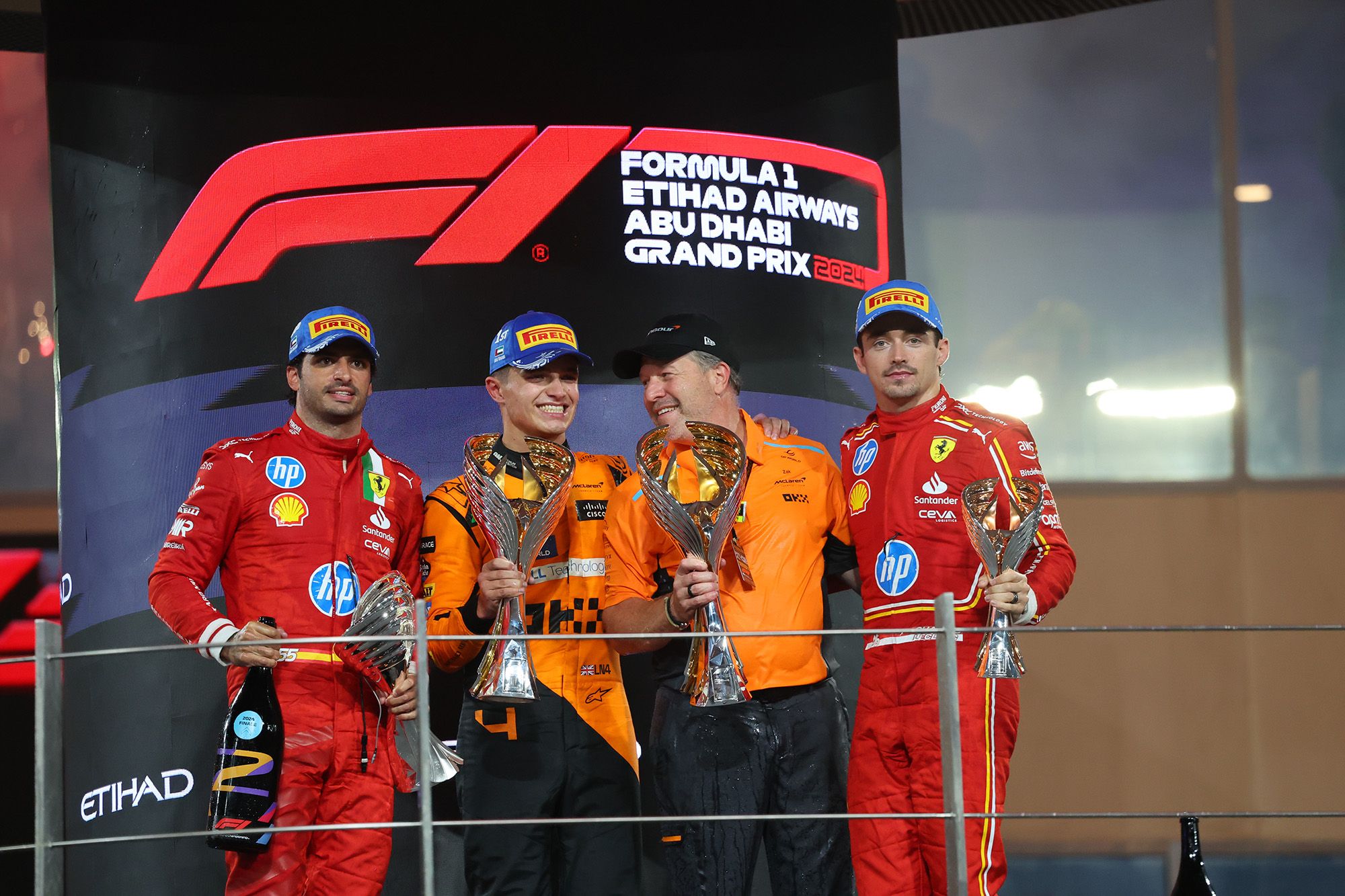 Avant le départ de la 24e et dernière course de la saison, rappelons en en quelques lignes les enjeux. Côté pilotes, le suspens est terminé depuis longtemps avec le quatrième titre consécutif de Max Verstappen. C’est sur le titre de vice-champion entre Lando Norris et Charles Leclerc, seulement séparés par 9 points, que l’intérêt allait se reporter. Le Britannique était favori puisque le Monégasque s’était vu pénalisé de 10 places en raison d’un changement de batterie et partira en fond de grille.