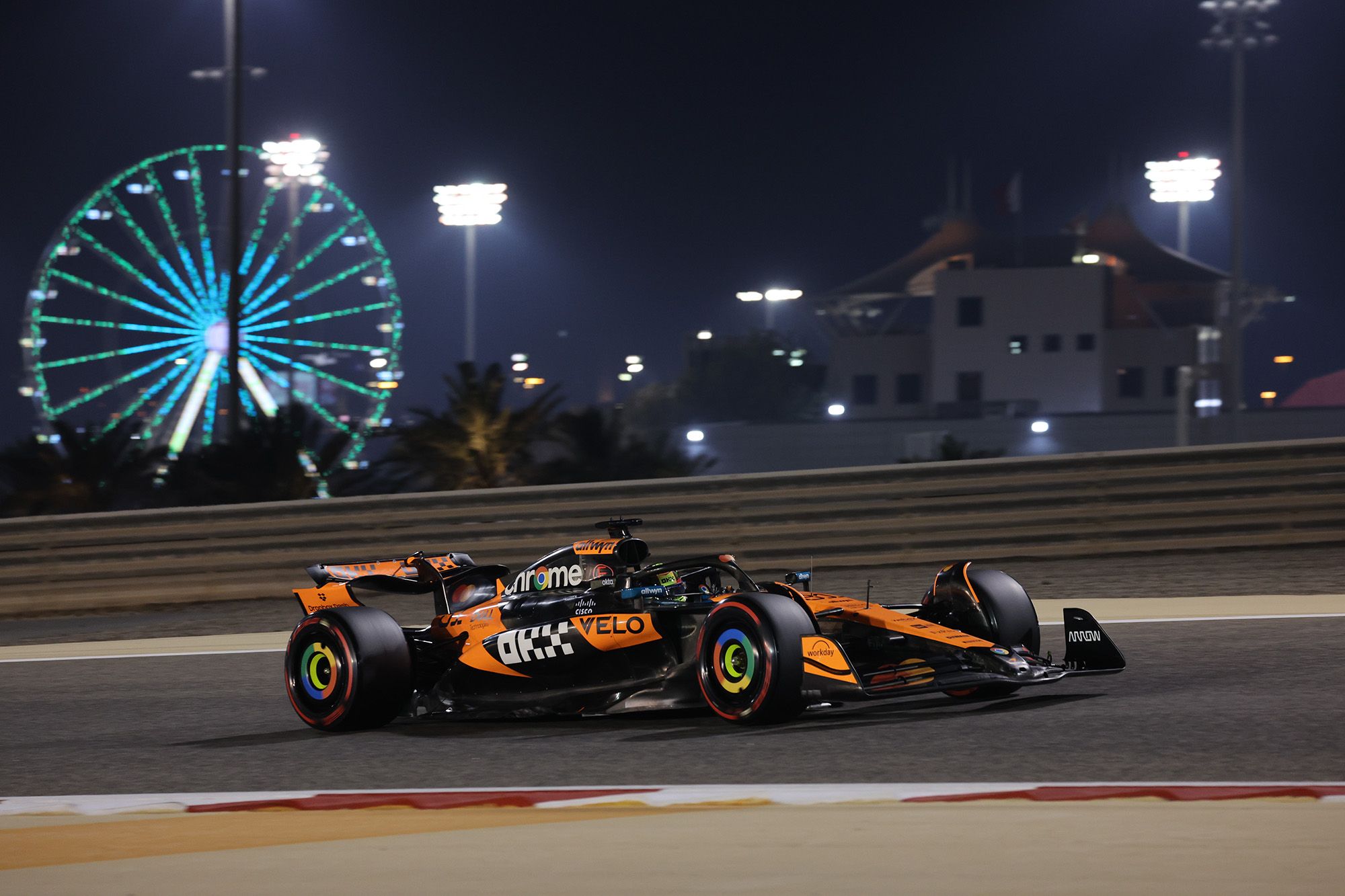 Après une première séance sous le soleil, en diurne, la nuit était cette fois tombée au moment où les monoplaces de F1 entraient en piste pour le deuxième roulage d’essais libres du Grand Prix de Barheïn, avec cette fois tous les titulaires au volant. Preuve de l’intérêt de cette séance, comparée à la première, la plupart des équipes essayaient tous les types de gommes proposés par Pirelli.