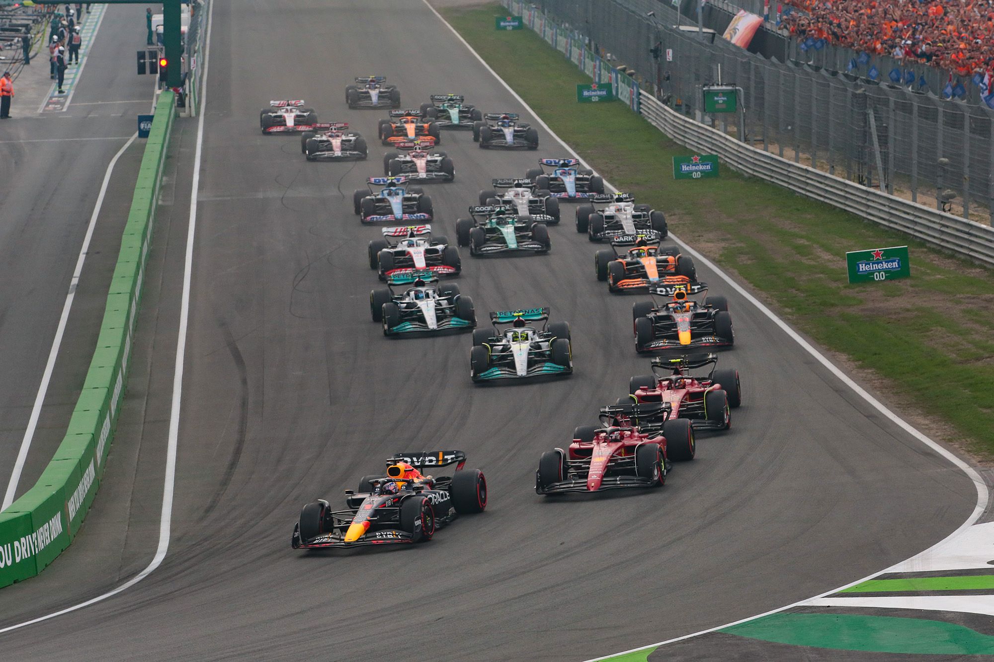 Au départ, Verstappen filait en tête devant Leclerc, Sainz (Ferrari) malgré un contact avec Hamilton (Mercedes), Perez (Red Bull), Norris (McLaren), Russell (Mercedes), Stroll (Aston Martin) et Ocon (Alpine). Le Français débordait Schumacher (Haas) et Tsunoda (Alpha Tauri) dans le banking du virage 3.