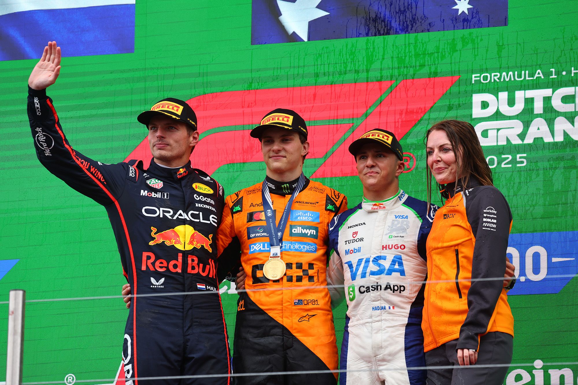 Le Grand Prix repartait pour un final sur quatre tours. Piastri devant Verstappen et Hadjar, pour la première fois en vue d’un possible podium. Rien ne changeait dans les dernières minutes et le Français pouvait savourer, tout comme Racing Bulls. Derrière, Russell conservait la quatrième place face aux assauts d’Albon. Suivaient un exceptionnel Bearman, parti des stands, mais aidé par les Safety-Cars, Stroll, parti, lui, du fond de grille, Alonso, Tsunoda et Ocon, qui marquait un petit point pour Haas.