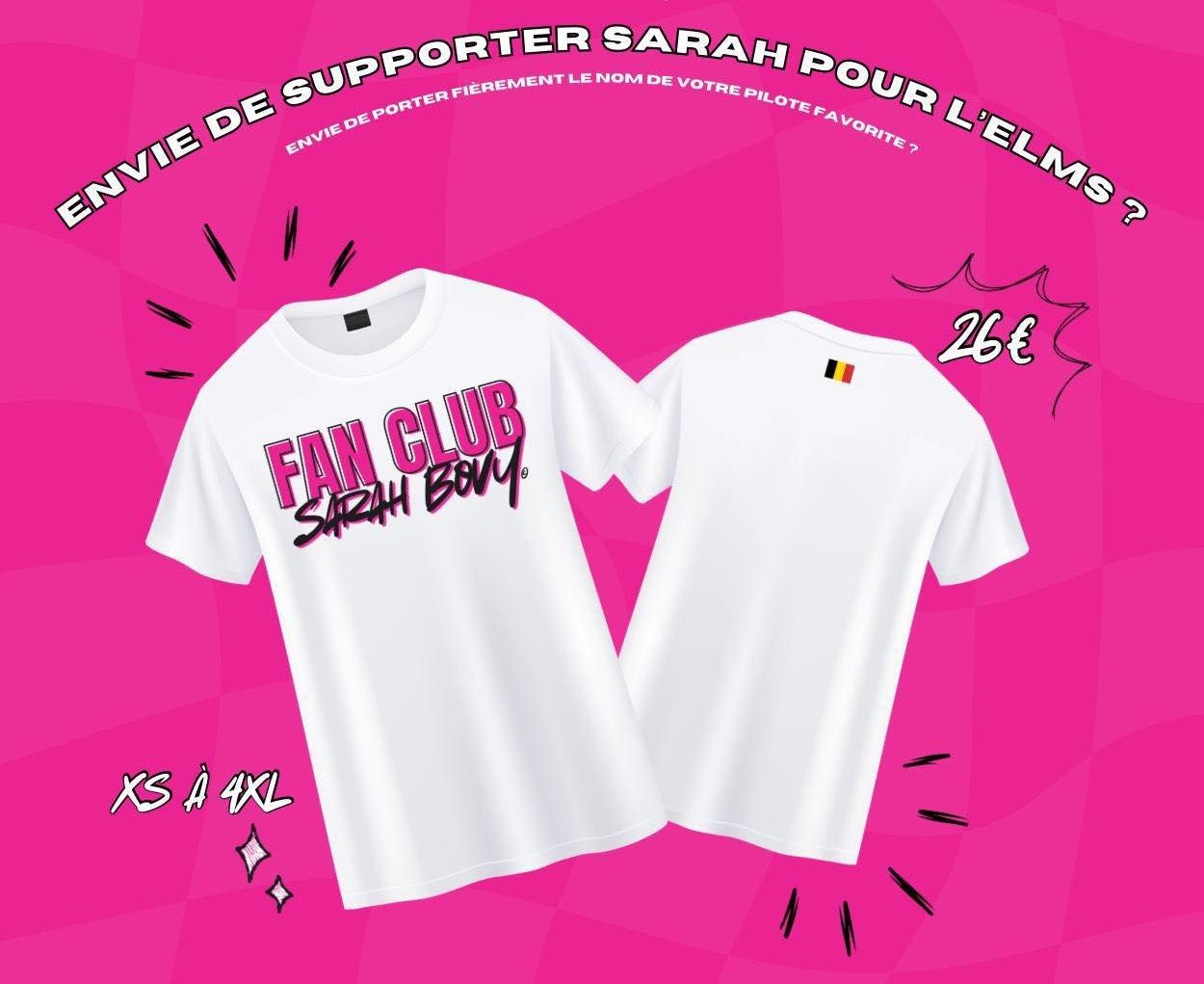 Bonne nouvelle, Speed Action vous propose de remporter dès maintenant deux exemplaires de ce t-shirt 'Fan Club Sarah Bovy' !