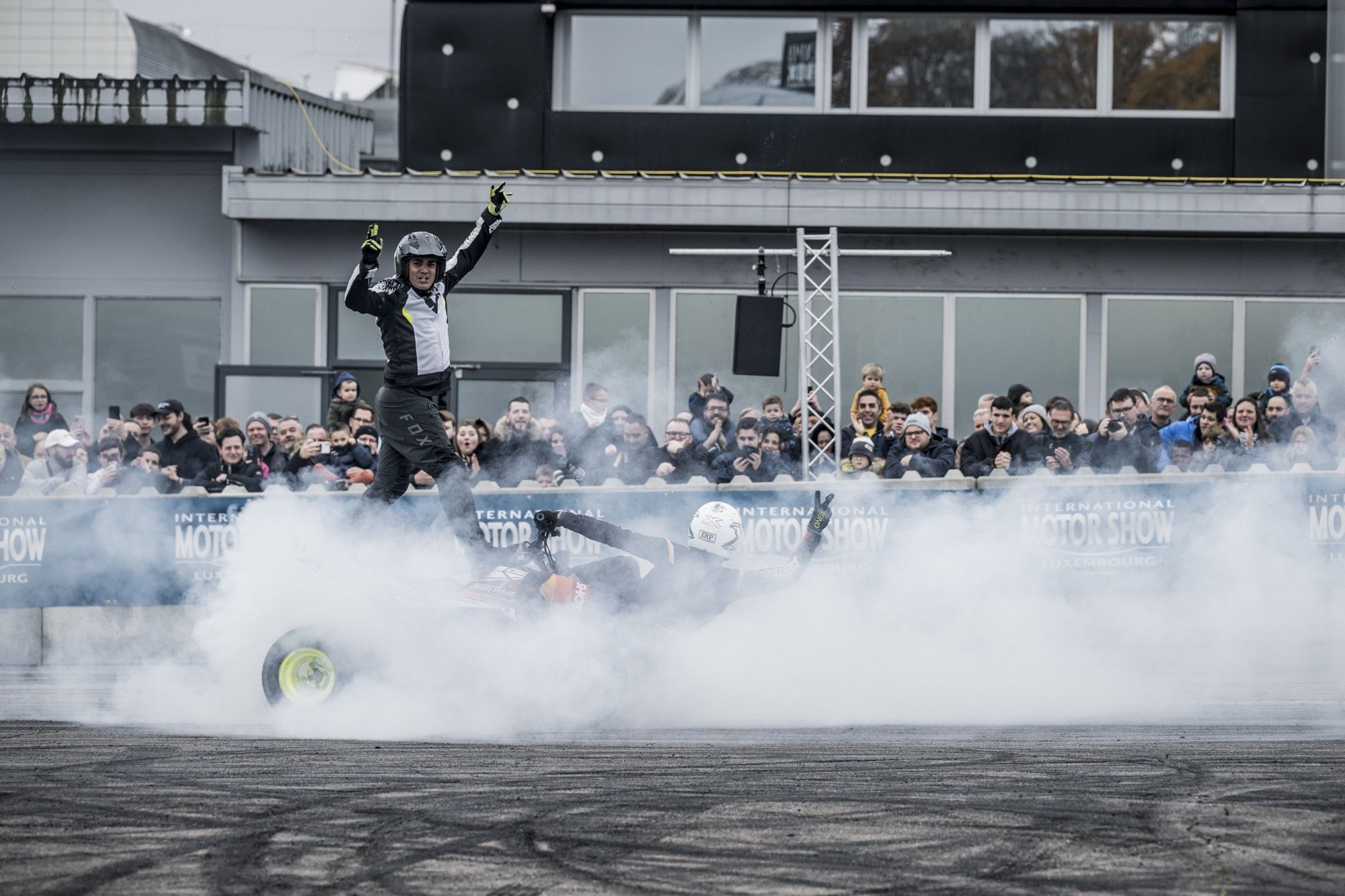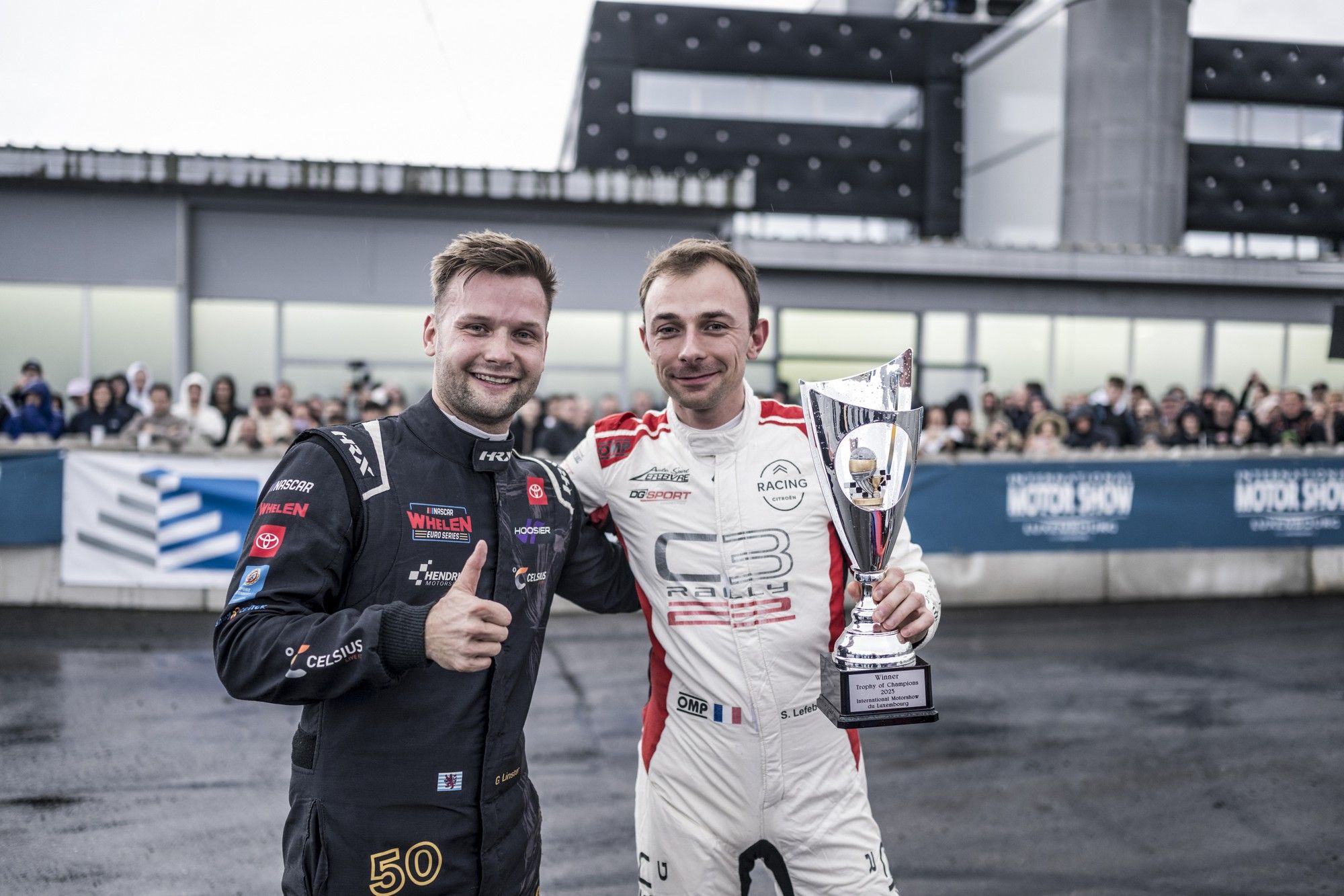Quant à la première édition du ‘Trophy of Champions’, qui consistait en des affrontements chronométriques avec des X-Cars TN5 signés LifeLive dans la Schilling Motor Show Arena, elle a clairement emballé des fans, d’autant que les surprises ont été nombreuses ! Samedi, dans un affrontement entre pilotes luxembourgeois, Gil Linster, qui évolue en NASCAR européenne, a surpris ses adversaires Gary Hauser (circuit), Bob Kellen (rallye) et Kevin Peeters (Autocross) ! Et ce dimanche, c’est l’ex-champion du monde Junior des rallyes Stéphane Lefebvre qui s’est qualifié pour la super finale, au détriment de Dylan Pereira (circuit), Adrian Fernémont (rallye) et Chris Leesch (endurance moto). Et lors de la Super Finale, disputée sous la pluie, Lefebvre a pris la mesure d’un Linster séduit par l’événement et tous les messages d’encouragement reçus ! Le concept est parfait, il est amené à grandir…