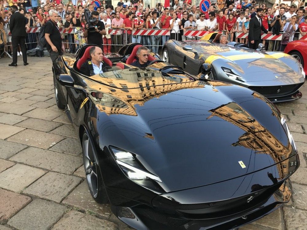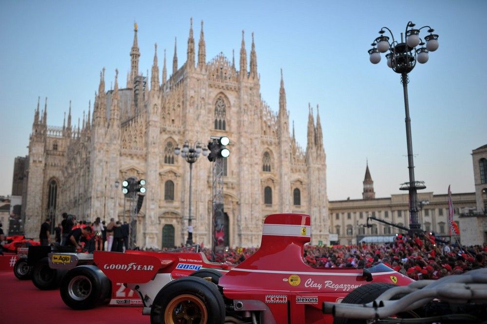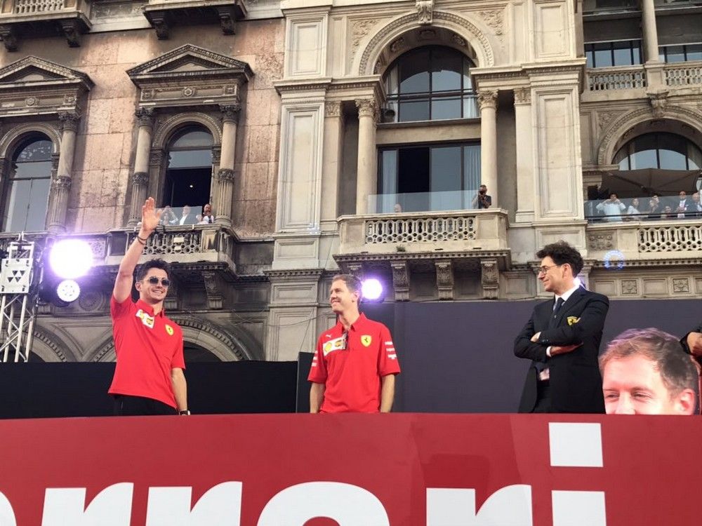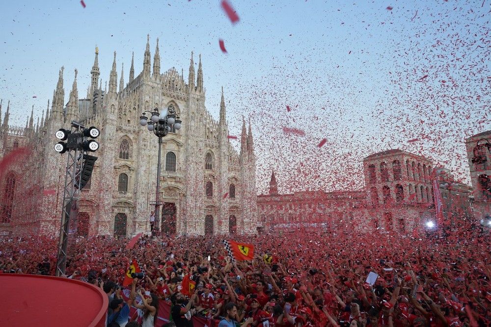 Quelques jours à peine après la victoire de Charles Leclerc à Spa, les Tifosi avaient de très bonnes raisons de faire une très grande fête ce mercredi sur la superbe Piazza Duomo de Milan. La marque au cheval cabré y a en effet célébré officiellement son 90ème anniversaire en présence d'innombrables pilotes qui ont marqué son histoire. Outre Leclerc et Vettel, les actuels hommes en rouge, on a retrouvé Mario Andretti, Alain Prost, Gerhard Berger, René Arnoux, Eddie Irvine, Luca Badoer, Ivan Capelli, Giancarlo Fisichella, Kimi Räikkönen, Felipe Massa, Mick Schumacher et bien d'autres. En plus de Jean Todt, Luca di Montezemolo, Stefano Domenicali et Maurizio Arrivabene. Plusieurs voitures mythiques étaient également exposées, avec la 312 ex-Amon, la 312/B3 ex-Regazzoni, la 126 CK ex-Villeneuve, la F2002 ex-Schumacher, sans oublier la SF90 de Vettel et Leclerc.