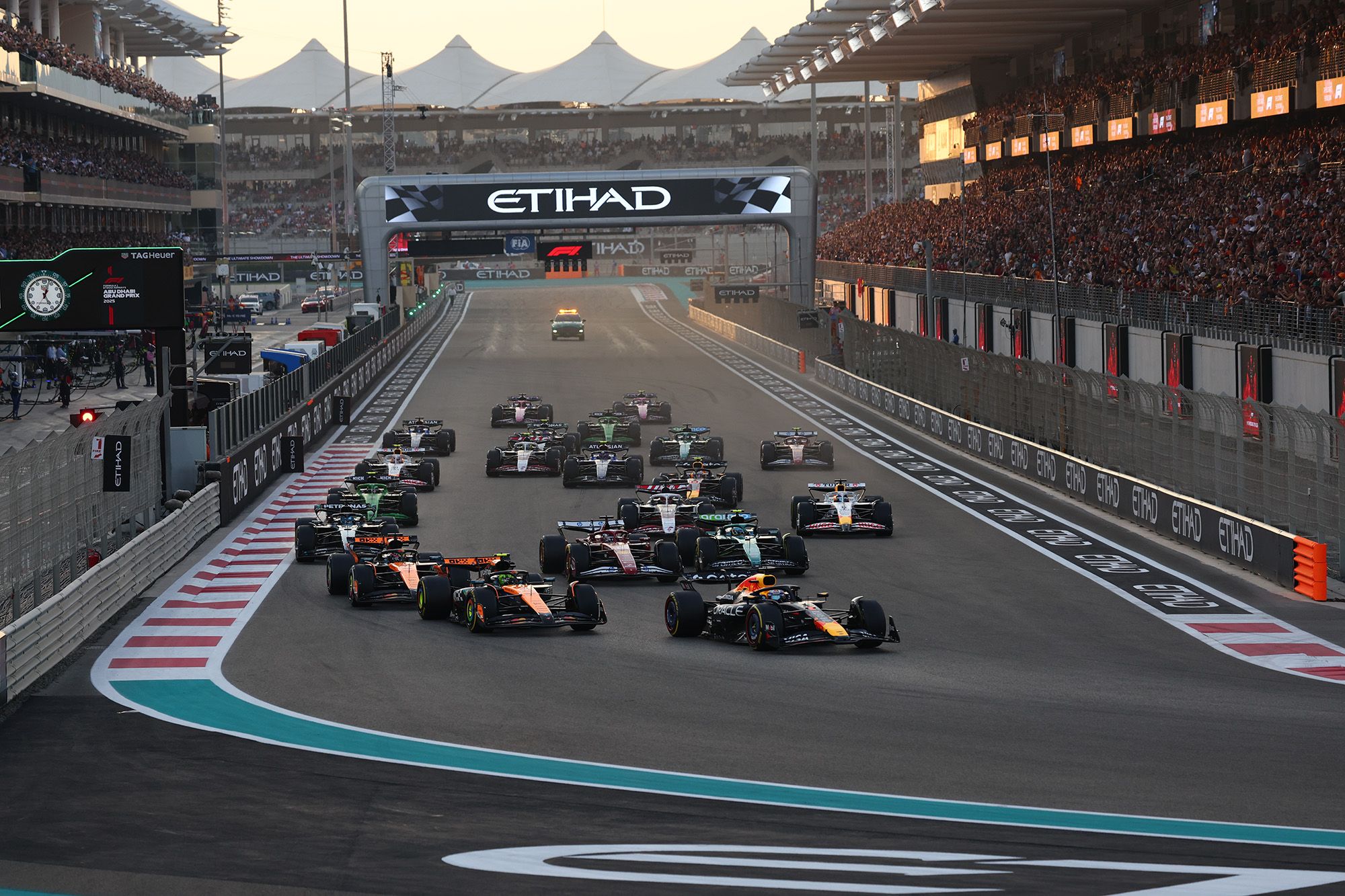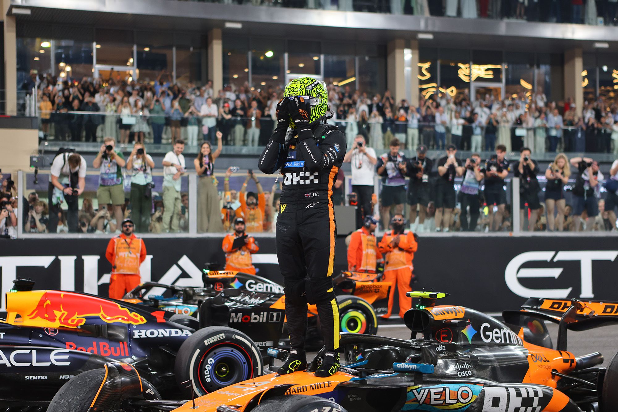 A tel point que le champion du monde en titre depuis 2021, deuxième du championnat depuis le Qatar, ne comptait plus que 12 points de retard sur Norris à l’amorce de cette course décisive. Piastri, lui, pointait à 16 points de son équipier. Ce qui augurait un Grand Prix d’Abu Dhabi explosif, avec la Red Bull en pole position devant les deux McLaren.