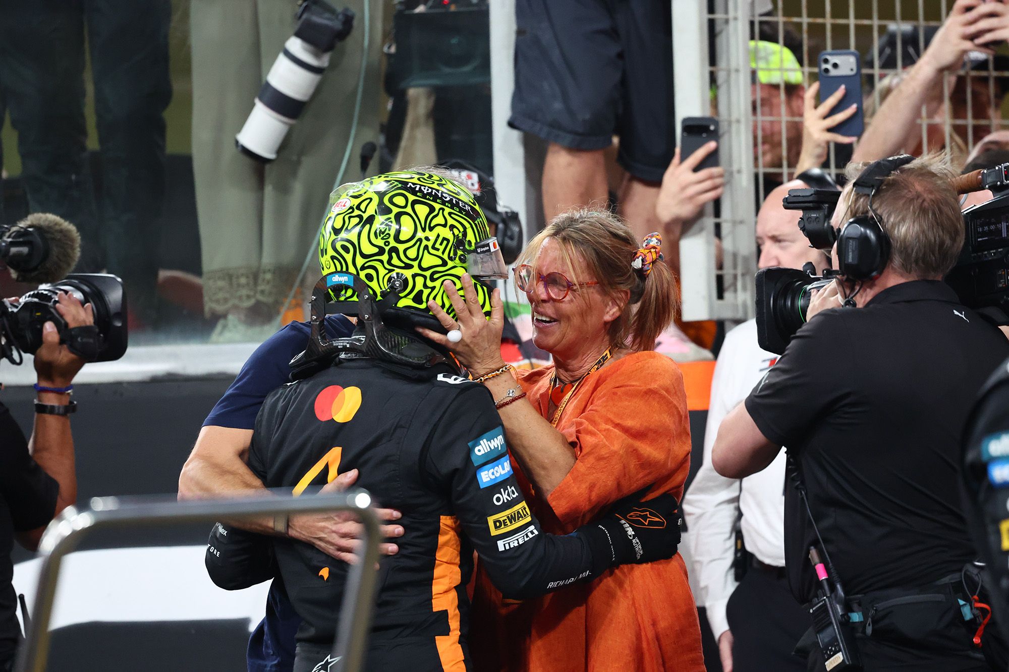 Juste après la mi-course, Norris, troisième de la course derrière Piastri et Verstappen, était virtuel champion du monde, avec 3 secondes de marge sur Leclerc. Russell, Stroll, Alonso, Bortoleto, Ocon et Bearman complétaient à ce moment le top 10.