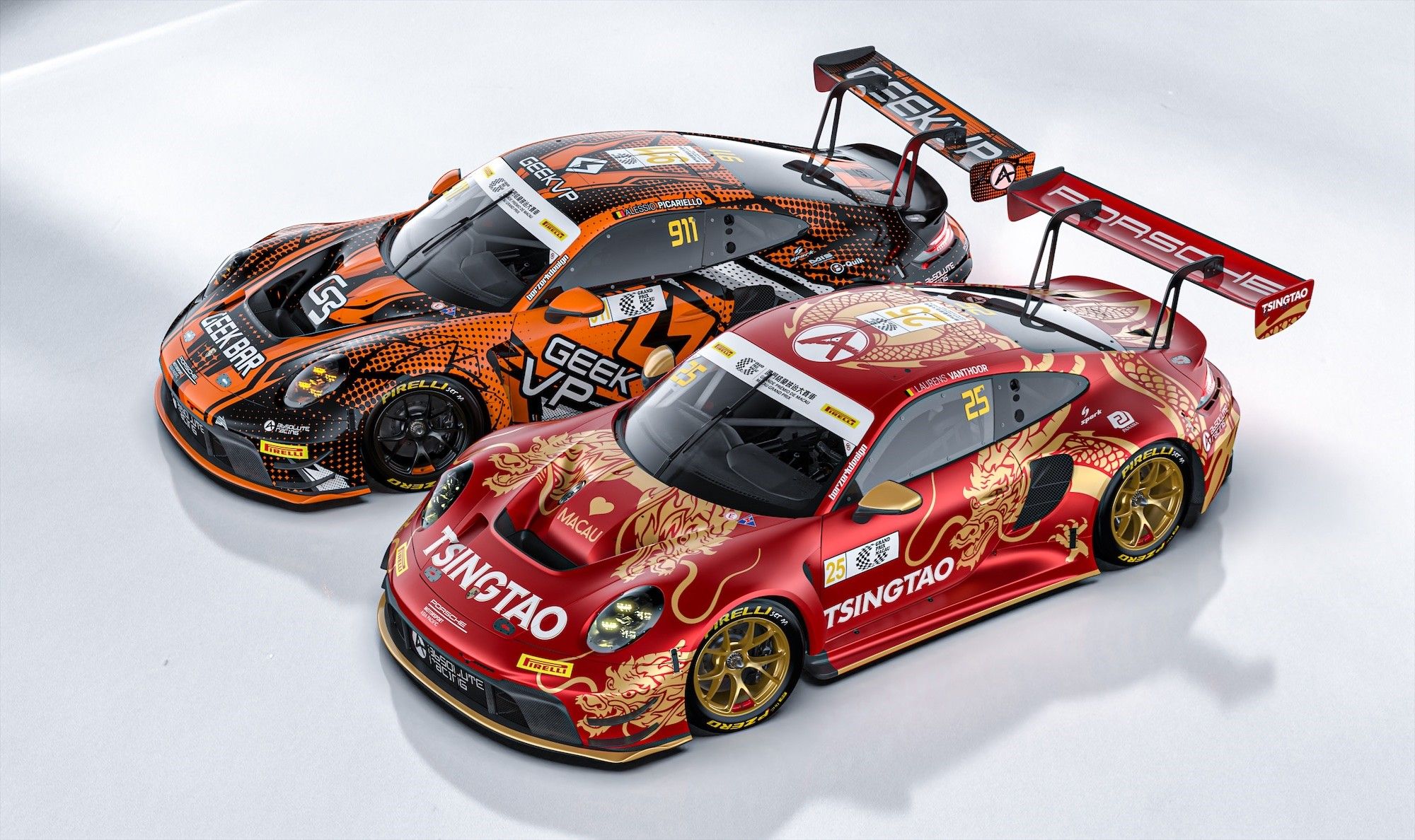 Comme le veut la tradition dans les rues de Macao, les deux Porsche alignées sont particulièrement colorées, avec la #25 aux couleurs de Tsingtao pour Vanthoor et la #911 à la livrée Geek VP pour Picariello. Une course qualificative de 12 tours et une finale de 16 tours constitueront la FIA GT World Cup 2024. Bon vent ! (Vincent Franssen)