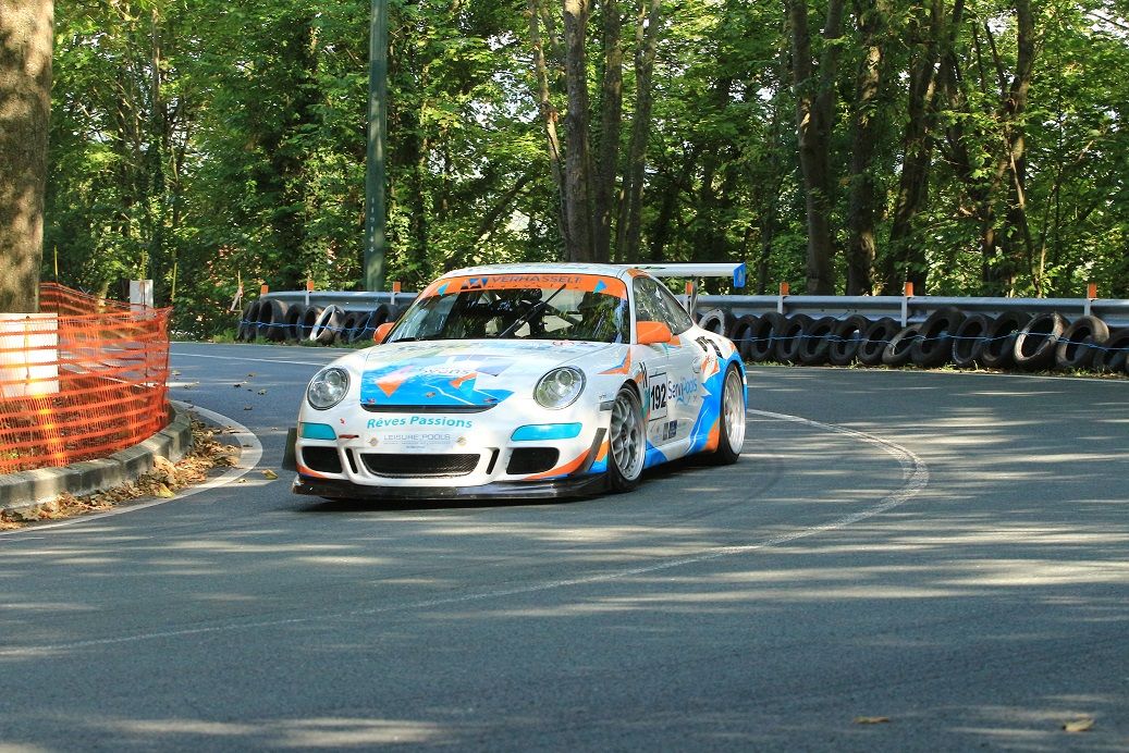 Tout aussi belle fut la lutte pour la 5ème place et la victoire en Classe E1-8 entre la propulsion de Cazzoli et la traction de Schwilden. Deux belles machines, très propres, deux excellents pilotes, très sympas et… 0"03 de mieux, au final, pour l’Opel Kadett GT/E ex-Derivière qui a enfin devancé la Peugeot 205 GTI ! Notez qu’aucun des deux n’a pu faire de tourisme, collés au train qu’ils étaient par un Christophe Le Nouvel qui est parvenu à glisser sa Citroën AX GTI une dizaine de centièmes de seconde derrière les précédents et 30 centièmes devant l’autre Porsche GT3 de Johny Swinkels... Nicolas La Valle, 9ème, a bien géré la concurrence pour s’imposer en E1-9 face aux excellentes Opel de Cartiaux (une bonne vieille Commodore qui a de la ressource) et Ciuca (Kadett GT/E). Bien que nettement distancée par une certaine AX en E1-7, la Fiesta ST du duo Soisson-Prickaerts fait montre d’un vrai potentiel, tandis que tous nos encouragements vont à Michelle Swinnen. Pensez un peu qu’il y a 5 mois, la jeune dame ne possédait même pas le permis de conduire et, qu’aujourd’hui, elle partage avec Stéphane Pétré une grand-mère encore fort désirable, la Porsche 935 ex-DVDG ! Si certaines courbes sont hésitantes (vous avez déjà essayé, vous, avec un sac à dos made in Stuttgart, millésime 1978 ?), les 385 chevaux n’effraient pas la dame qui réussit de sacrées envolées ! Dommage ce petit souci électrique en seconde montée, puis ce repos anticipé, contraint et forcé (pour préparer sa garde de nuit comme ambulancière…).