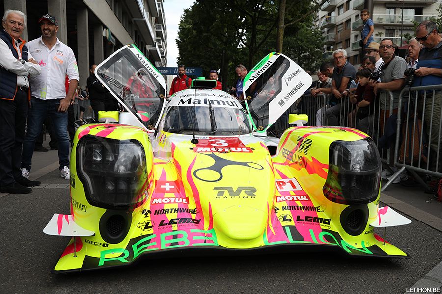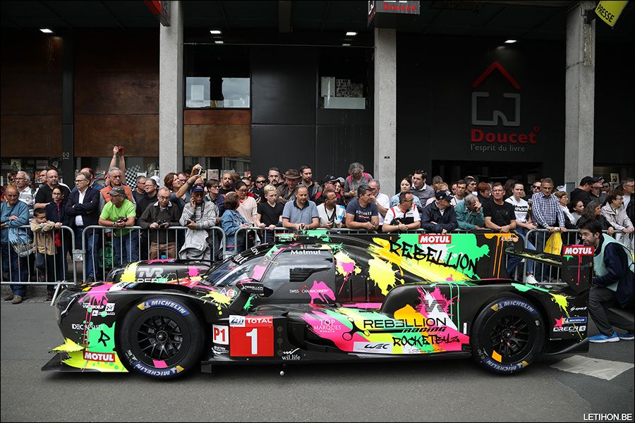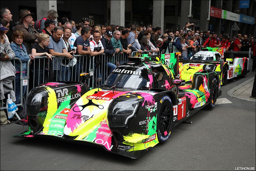 La grande semaine des 24 Heures du Mans a débuté ce week-end avec le traditionnel Pesage, soit les différentes opérations de contrôle technique menées au centre-ville. Et l'équipe Rebellion a incontestablement défrayé la chronique en présentant des livrées aussi inédites que tapageuses pour les bolides #1 de Lotterer-Jani-Senna et #3 de Laurent-Berthon-Menezes. En collaboration avec l'artiste Tomyboy, adepte de couleurs flashantes sur des produits de luxe, les LMP1 de l'équipe suisse ne risquent effectivement pas de passer inaperçues, mêmes à plusieurs tours des Toyota. Le concept 'Art Car' a été poussé tellement loin que les pilotes Rebellion se sont mués en 'artistes' eux-mêmes, bombe de peinture à la main. Qu'en penser ? A chacun ses goûts. Mais on a l'étrange impression que le concept 'Art Car' est un peu trop souvent utilisé ces derniers temps. Et vous, vous aimez ? (Vincent Franssen / Photos Letihon.be - C. Delfosse)