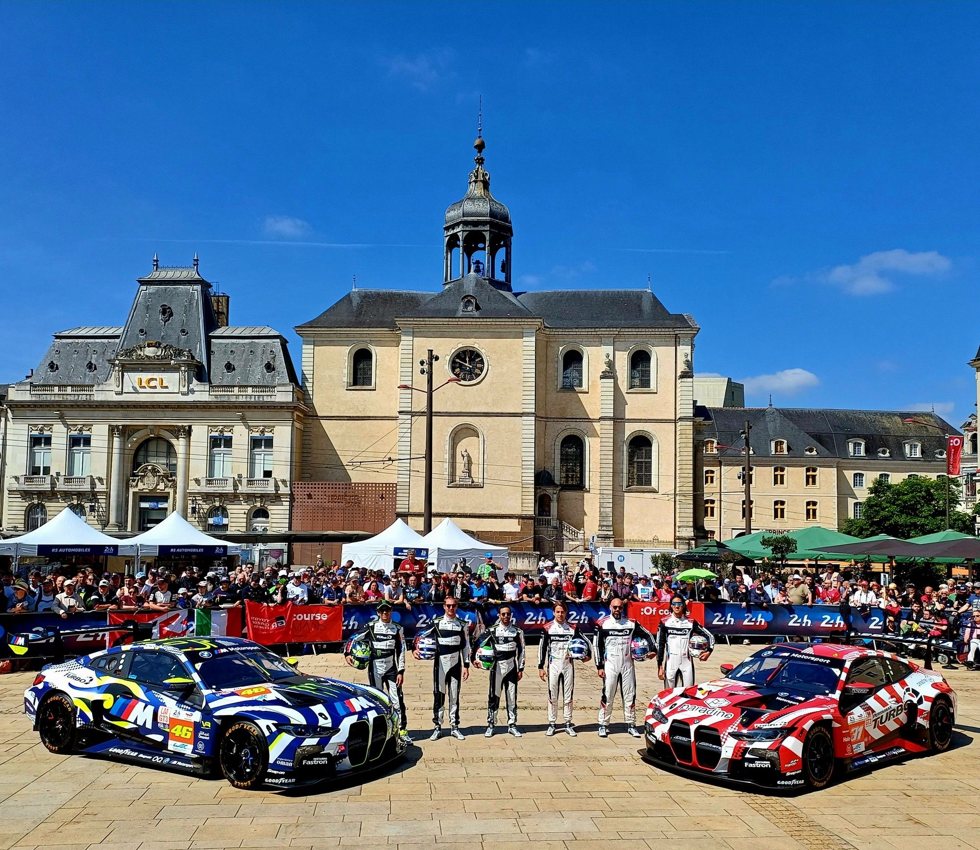 Les vérifications techniques en centre-ville, c’est unique, c’est aussi çà la magie du Mans, une proximité rare avec les différents acteurs ! Cette première journée à été marquée par l’arrivée du BMW M Team WRT et de sa star maison, le 'campionissimo' Valentino Rossi qui a véritablement charmé le public par sa gentillesse et sa disponibilité. Le sympathique Italien était lui aussi très heureux de découvrir cet accueil chaleureux. "Incroyable, je n’ai jamais vu çà !", et quand nous lui demandons comment il appréhende cette course mythique, sa réponse est claire : "La voiture est au point, mais la lutte sera acharnée en GT3, le tout est de bien gérer la course d’une manière propre". Maxime Martin ajoute : "Nous avons une bonne voiture, un bon line-up et de bons équipages." D’autre part, Pierre Dieudonné nous confie que les BMW Hypercar sont ici pour accumuler de l’expérience et clairement préparer 2025. Thierry Tassin est du même avis : "Nous allons essayer d’apprendre un maximum, notre objectif est de terminer, ce sera difficile de viser le podium en Hypercar cette année, avec 23 voitures c’est super compétitif, ce ne sera pas facile. Nous allons essayer de rester sages, et si nous parvenons à terminer dans le top 5, nous serons très satisfaits, nous allons essayer de ne pas commettre d’erreurs."