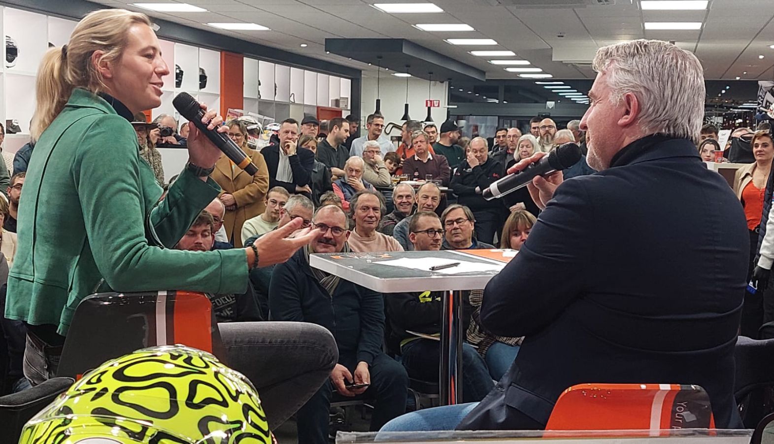 Entre une Sarah Bovy au sommet de sa popularité - notamment grâce à l'émission Auto-Moto de TF1 ! - mais qui reste la fille/femme tellement attachante qu'elle a toujours été, un Marc Duez qui a rouvert, pour le plus grand plaisir de chacun, le livre des souvenirs... forcément rigolos, un Tom Heindrichs filant sur les traces de son frère Thierry Neuville et dont la personnalité en a séduit plus d'un, des Lucas Cartelle et Lény Cols (avec papa Larry) qui ont d'excellentes raisons de fixer rendez-vous à leurs supporters en 2026, et les fères Antoine et Benoit Reul - avec Quentin Schmitz - qui ont présenté un projet Minotor qui va les emmener sur les spéciales du W2RC dès la prochaine saison et du Dakar en 2027, il y a avait de quoi faire et prendre du plaisir ! Le silence quasi religieux qui a régné jusqu'au bout des interviews en disait long sur la manière dont le public de ce SPA Racing Café by Speed Action a apprécié de moment d'échange de fin de saison...